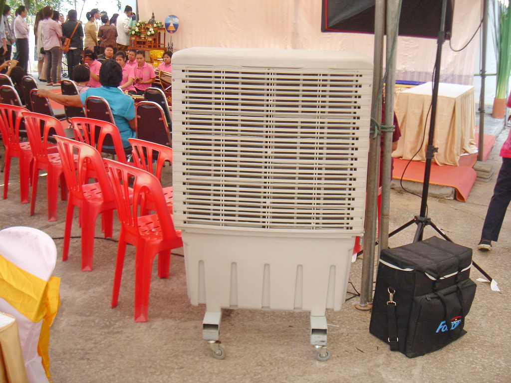 มีแอร์เคลื่นที่ และพัดลมไอน้ำติดตั้งไว้หลายตัว