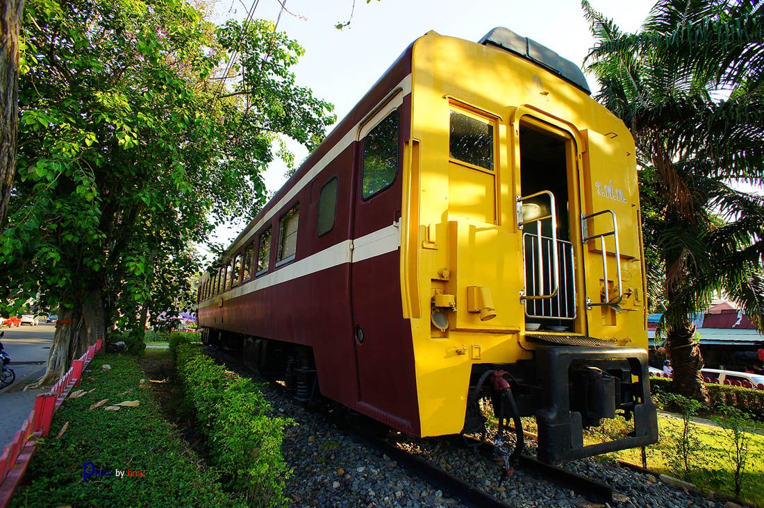 ด้านหน้ามีโบกี้รถไฟ ทำเป็นห้องสมุดด้วยครับ.