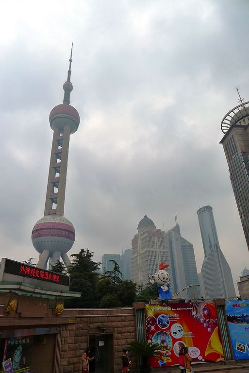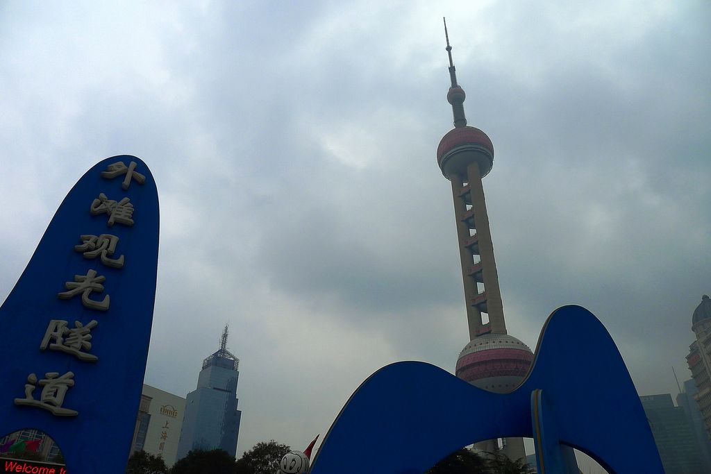 หอไข่มุกตะวันออกเป็นหอส่งสัญญาณวิทยุโทรทัศน์สูง 468 เมตร ลักษณะเป็นไข่มุก 11 ลูก และ เสา 3 เสา ด้านบนเป็นรูปไข่มุก 3 เม็ด 3 ขนาดเรียงกันในแนวตั้ง ที่นี่เป็นที่ทำการของสถานีโทรทัศน์ 9 แห่ง และสถานีวิทยุ 10 แห่ง ภายในหอกลมทำเป็นภัตตาคาร โรงแรมหรูขนาด 25 ห้อง และร้านค้า ด้านใต้ตรงฐานของหอจัดเป็นพิพิธภัณฑ์ประวัติศาสตร์เมืองเซี่ยงไฮ้เมืองจำลองโลกอนาคต และเมืองวิทยาศาสตร์แฟนตาซี ช่องกลางของหอไข่มุกตะวันออกเป็นเสาปล่องกลวง ใช้แขวนลิฟท์ความเร็วสูง 6 ตัว ที่มีความเร็ว 7 เมตร/วินาที เพื่อขึ้นไปที่จุดชมวิว ในระดับความสูง 267 เมตร ส่วนในเวลากลางคืนนั้น หอกลมจะเปิดไฟที่สามารถเปลี่ยนสีไปได้เรื่อยๆ บนไข่มุกเม็ดที่สองจะสามารถมองลงมาข้างล่างได้เนื่องจากทำพื่นเป็นกระจก