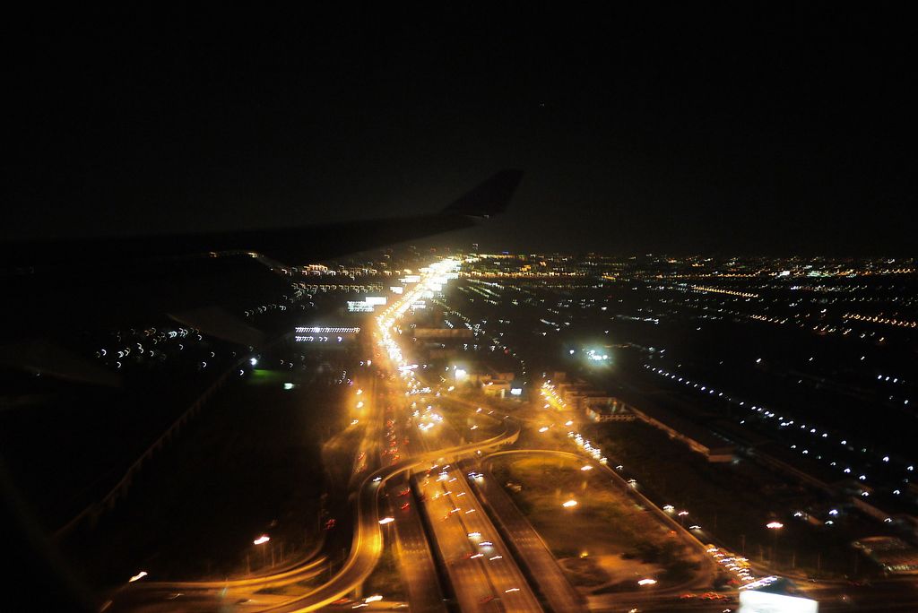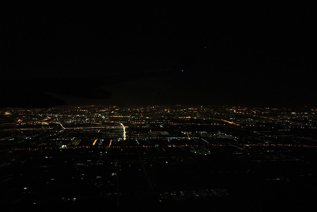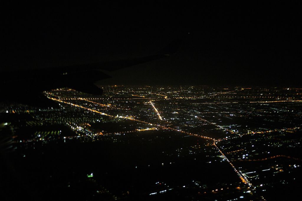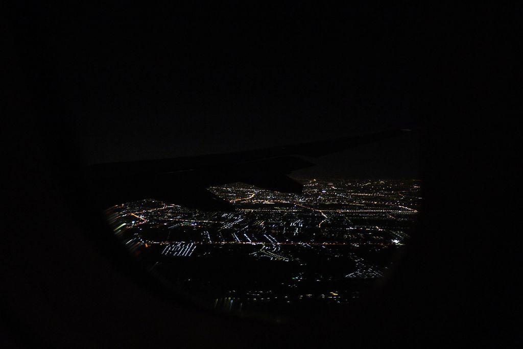 ตื่นมาดูนอกหน้าต่าง เห็นแสงไฟ ใกล้ถึงสุวรรณภูมิแล้ว