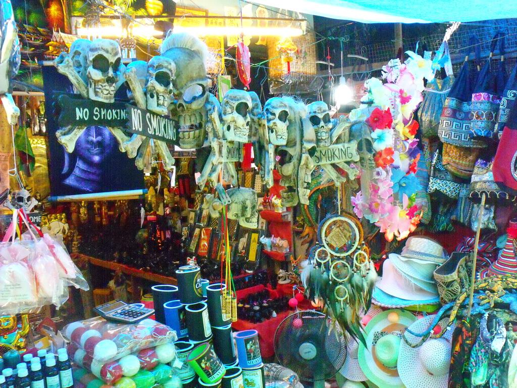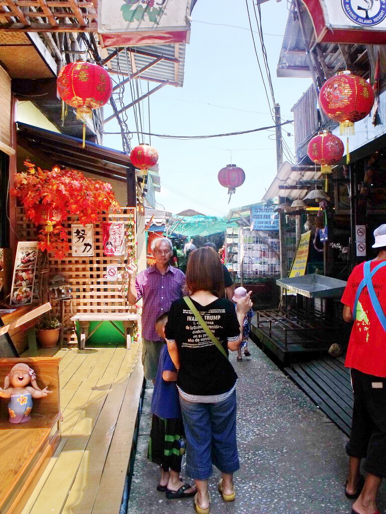 สองข้างทางเต็มไปด้วยร้านค้า ขายของที่ระลึก และร้านอาหารมากมาย
