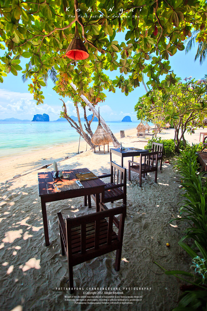 แสงแดดที่อยู่เหนือหัวจะทำให้ใบไม้โปร่งแสงขึ้น และทรายขาวๆก็จะสะท้อนแสงขึ้นไปเปิดเงาที่ใบไม้นิดๆด้วยครับ