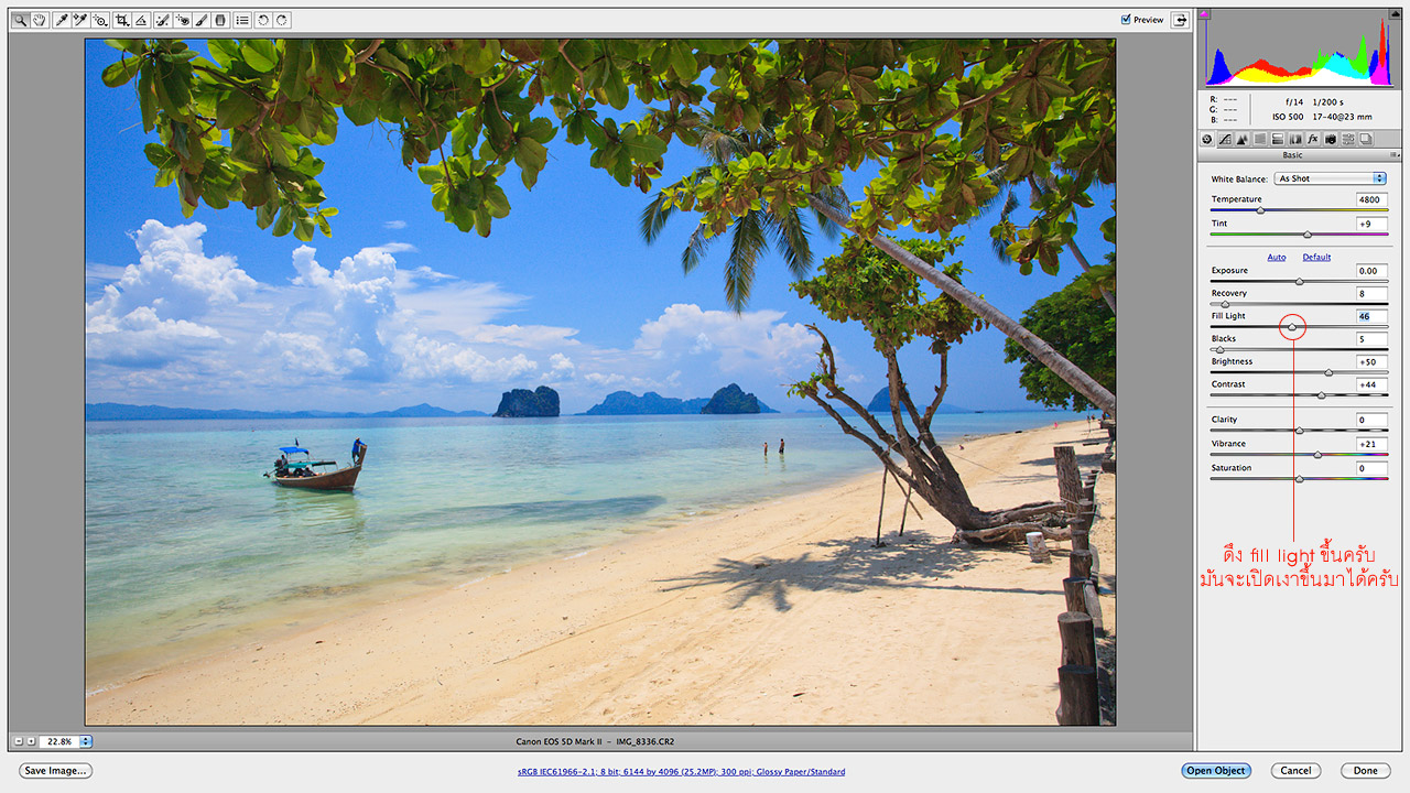 อันนี้คือไฟล์ raw ครับ จับมาดึง fill light ตามที่ผมวงไว้เลยครับ เท่านั้นละ ส่วน midtone+shadow จะสว่างขึ้นมาครับ ดึงบ้างนิดๆหน่อยๆ