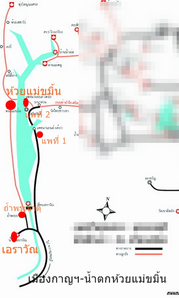 1. จากตัวเมืองกาญฯใช้เส้นทางไป อ.ศรีสวัสดิ์ วิ่งไปจนสุดทาง ข้ามแพที่ 1 ค่าแพประมาณ 60 บาท วิ่งต่อไปข้ามแพที่ 2 ค่าแพประมาณ 180 บาท