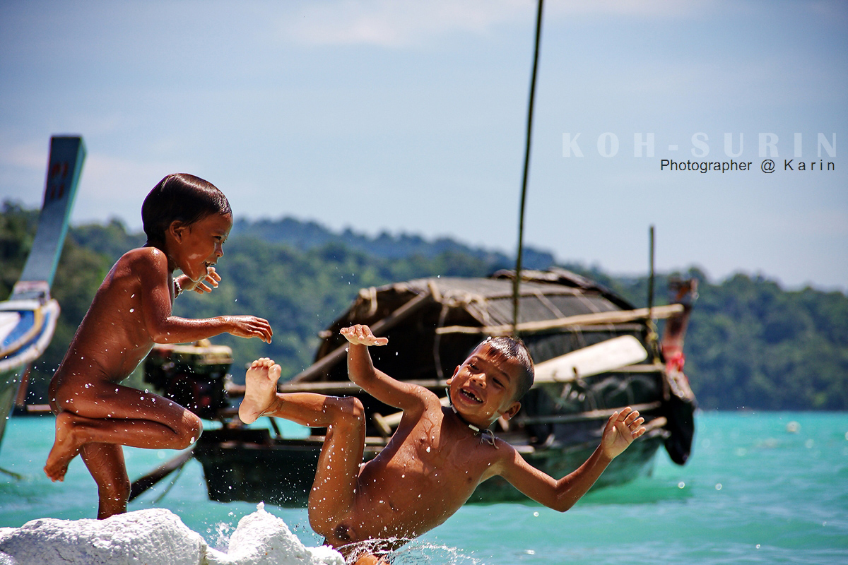 เนื่องจากเลนส์ที่มีอยู่ไม่เพียงพอต่อการถ่าย เลยกระโดดลงไปในน้ำพร้อมกับเด็กมอแกนมันซะเลย