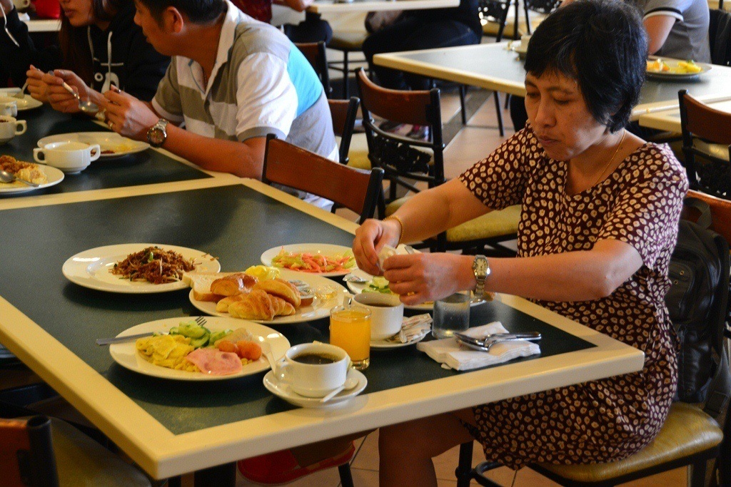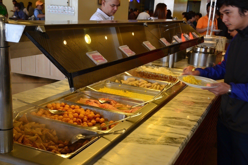 แถวบุฟเฟ่ต์อาหารเช้าค่ะ ดูซิว่า คนเอาเงินมาให้คาสิโนมากแค่ไหน