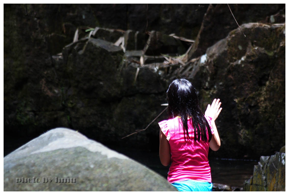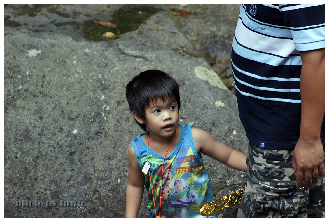 หลานตัวเล็กยังหวาดๆ สงสัยเป็นครั้งแรกที่จะได้เล่นน้ำตก..
