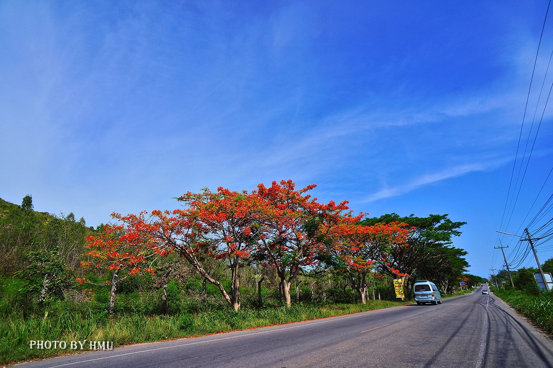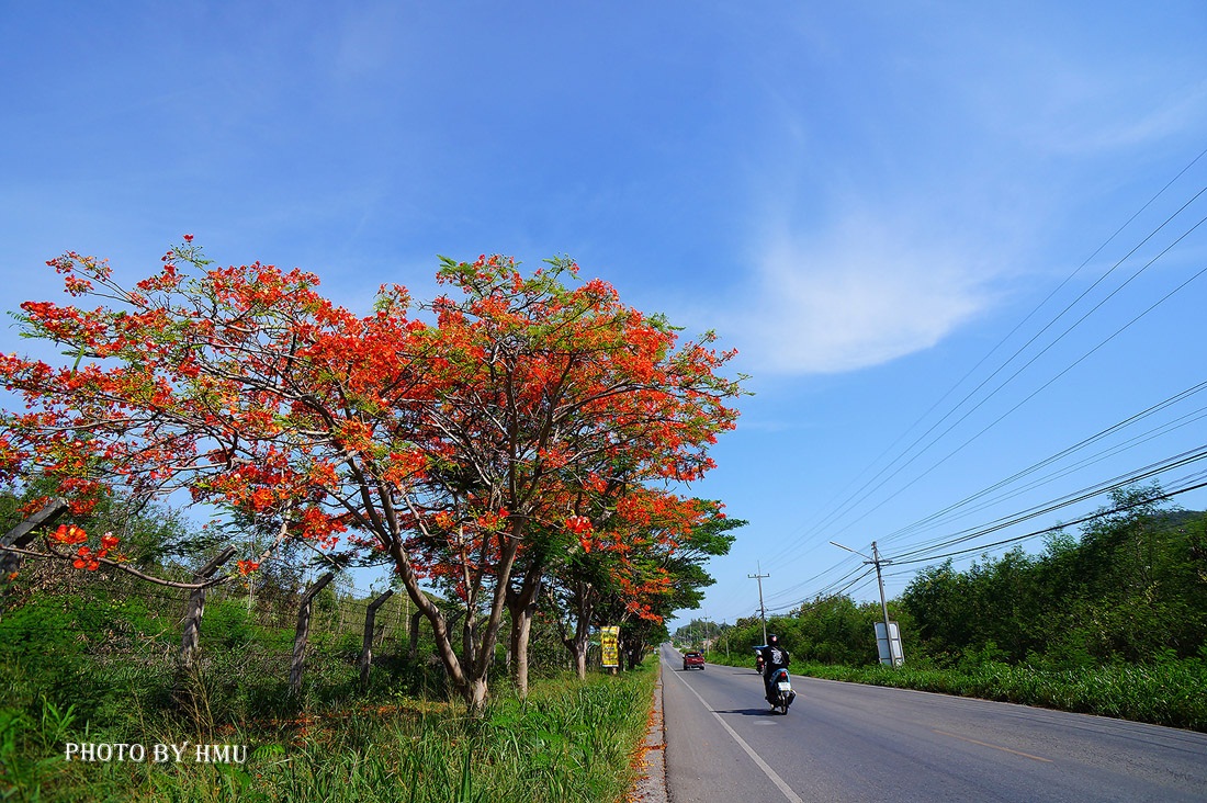 ระหว่างทางกลับ ต้นหางนกยูงกำลังออดดอกสพรั่ง.