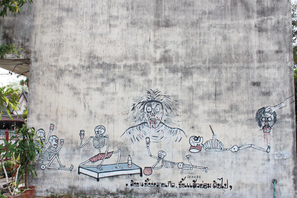 ผนังด้านนอกของพระอุโบสถ์ (แปลกดีครับ)