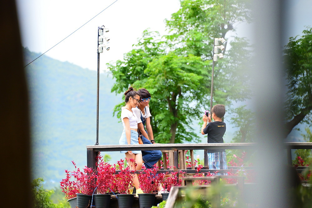 เดินลงมา กำลังเดินไปถ่ายรูปดอกไม้ด้านซ้าย