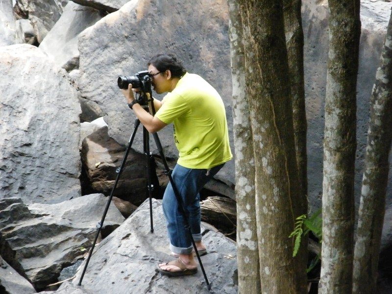นายช่าง กำลังยิงกล้อง สำรวจ น้ำตกครับ