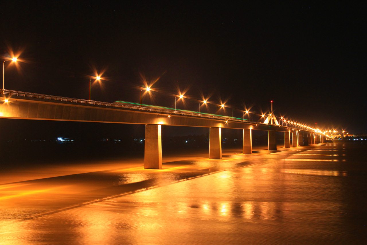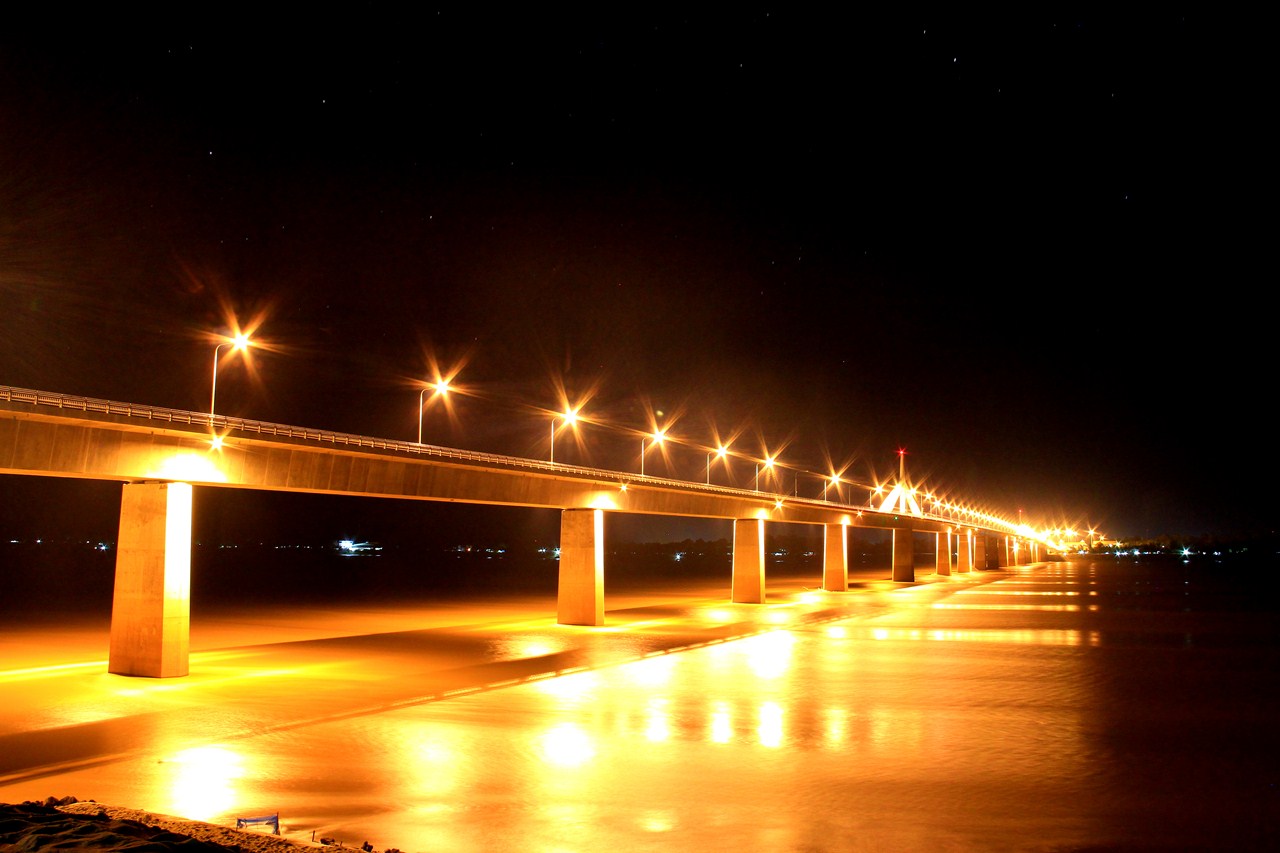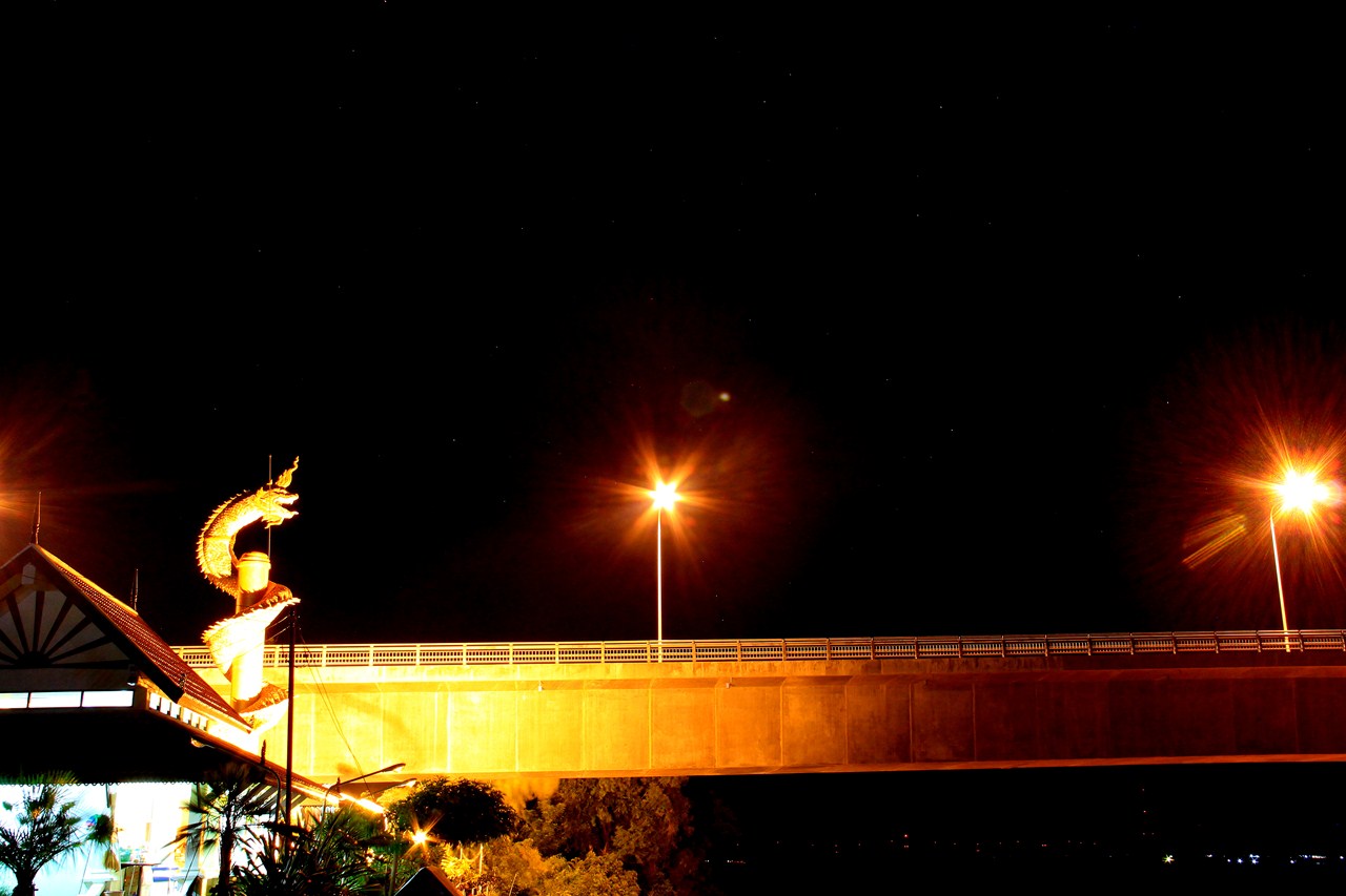 ออกจากพระธาตุมาถึงสะพานไทย-ลาวที่มุกดาหารก็มืดพอดีเลยแวะเข้าไปเก็บภาพกันก่อน