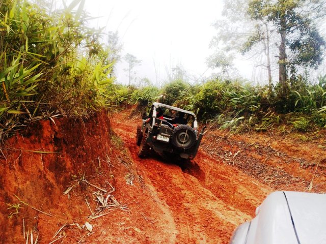 มองฟ้าแล้วถ้าฝนตกลำบากแน่เรา ทางขึ้นเขาด้วย แล้วเราก็ขับสองล้อหน้า