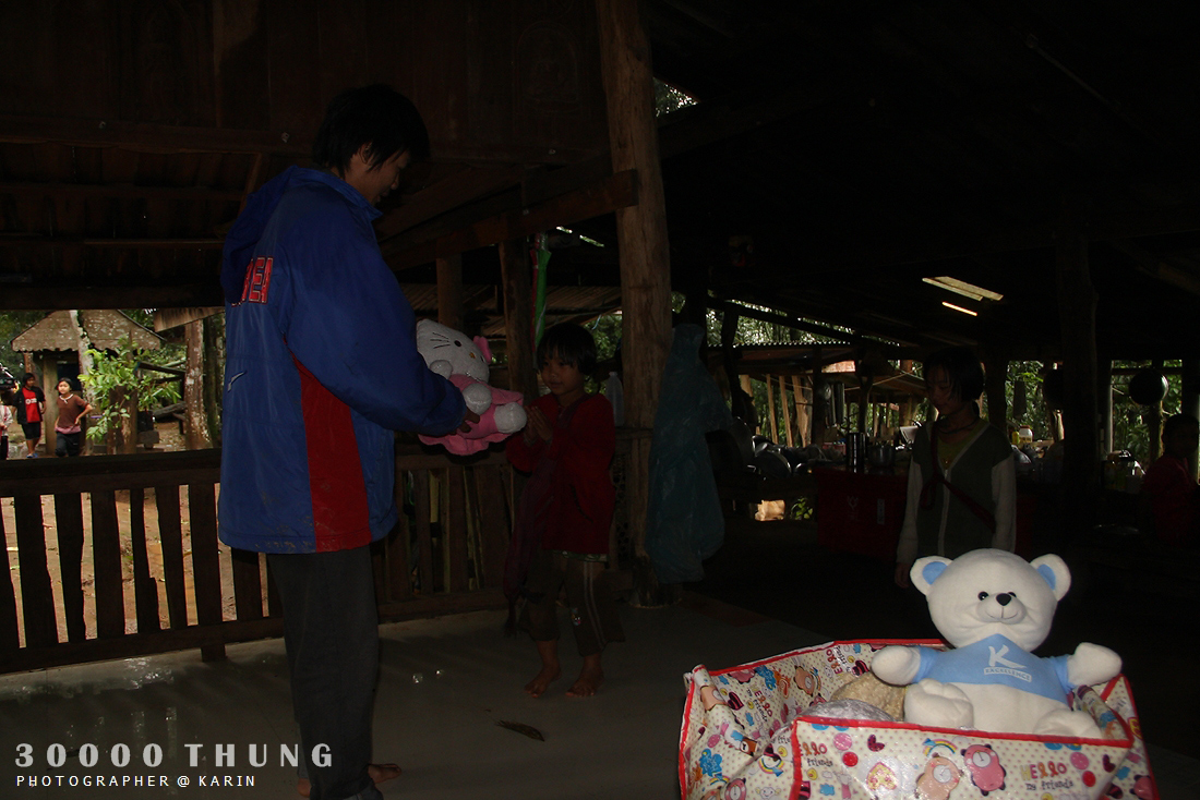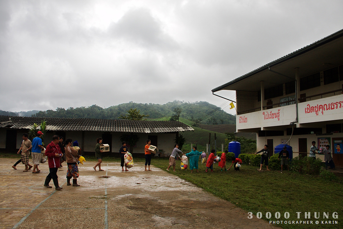 อย่างที่ทราบ โรงเรียนบนดอยแห่งนี้เด็กๆจะเดินทางมาอยู่แบบประจำ ถ้าใครเดินทางไกล้ๆ ก็จะกลับบ้านแทบทุกวัน แต่ถ้าใครอยู่ไกลก็จะมาค้างที่โรงเรียน แล้วนานๆจะเดินทางกลับบ้านที เรามาถึงเราก็ยังเจอเด็กๆบางกลุ่ม ที่ค้างที่ โรงเรียนไม่กลับบ้าน แต่เราก็ได้มอบของเสื้อผ้ากันฝน รองเท้าแก่ครูไหญ่ เพื่อนำไปแจกจ่ายกันต่อไป