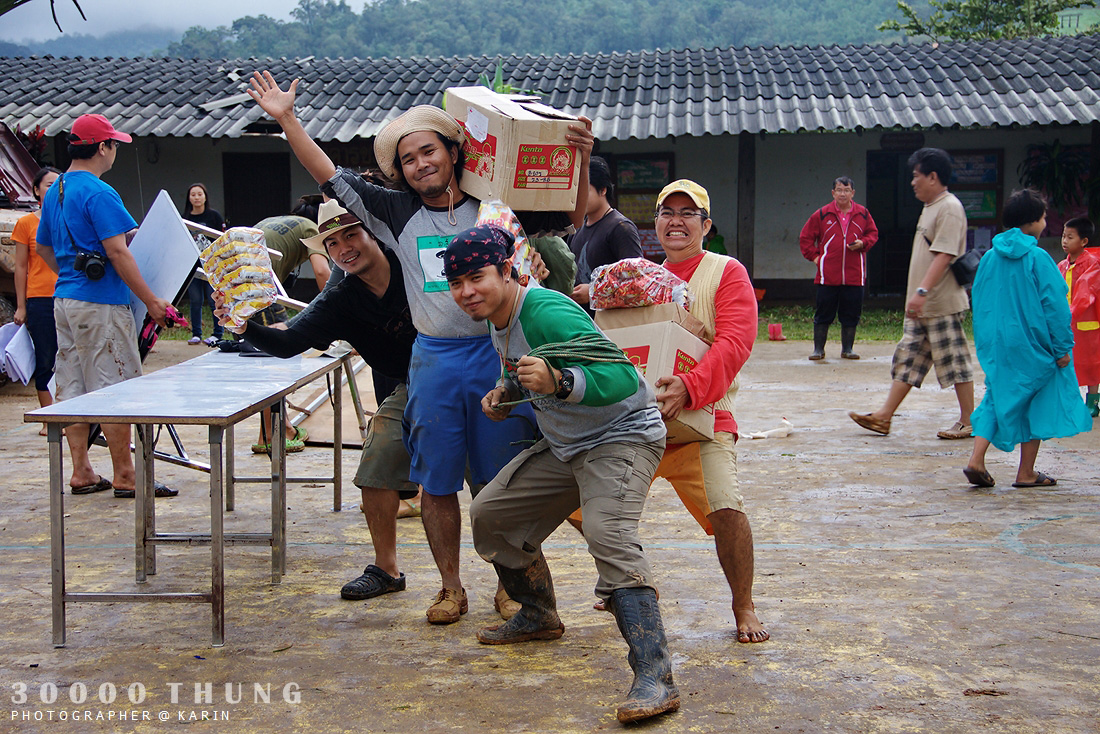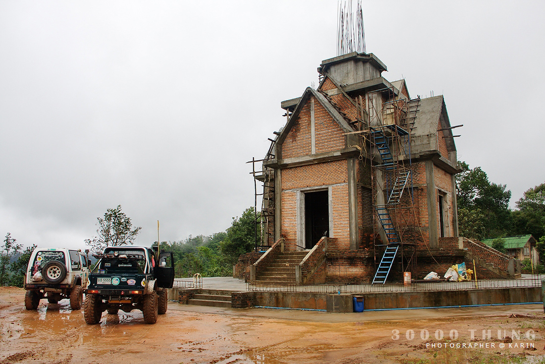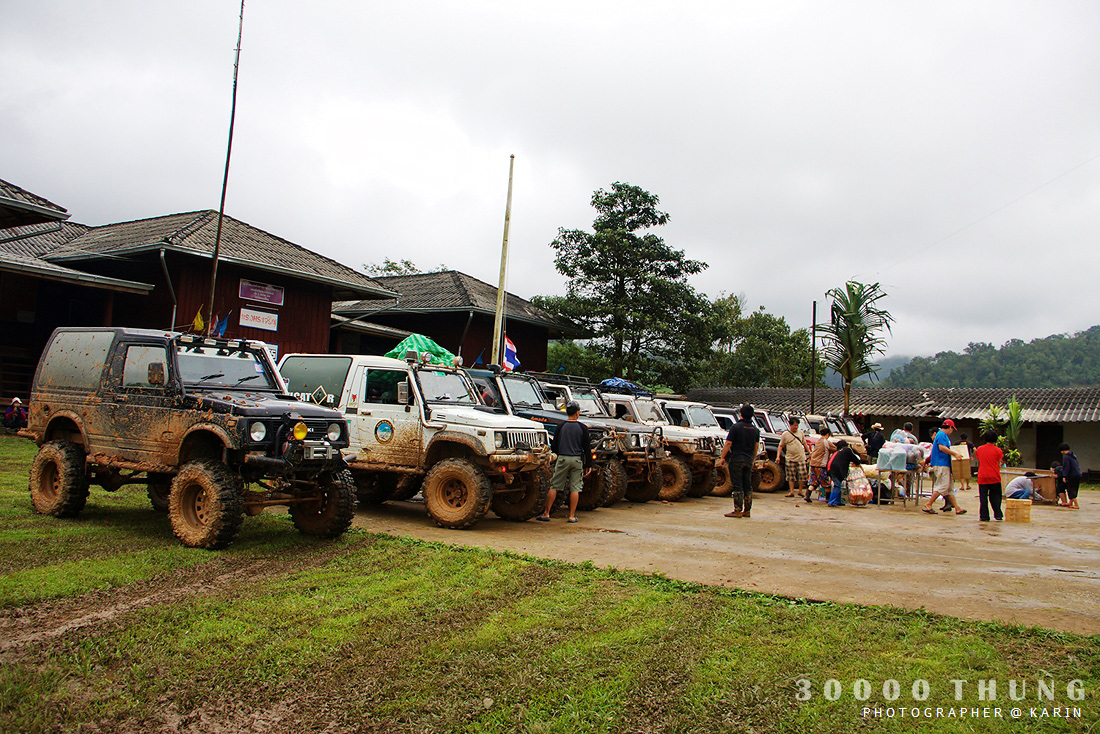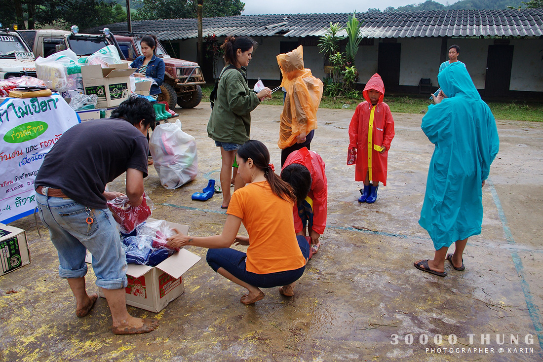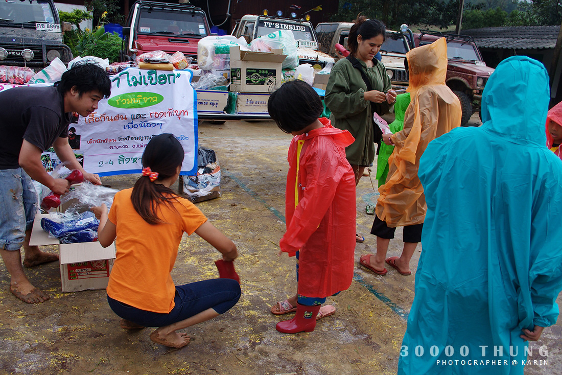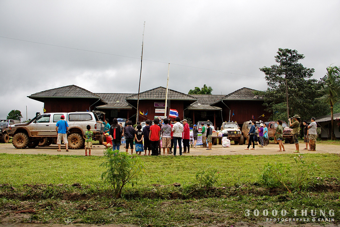ระยะทางจากปากทางที่เป็นถนนปูน มาถึงด้านในโรงเรียนที่เราจะไปมอบเสื้อกันฝนและรองเท้า ระยะทางประมาณ 20 กม แต่พวกเราใช้เวลากันนานพอสมควร เรียกได้ว่าต่อสู้เส้นทางกัน มาถึงจุดนี้ก็เริ่มเย็นกันแล้ว เพราะจากตรงนี้ไปก็จะถึงหมู่บ้านกันแล้วครับ