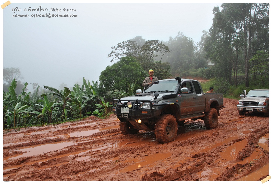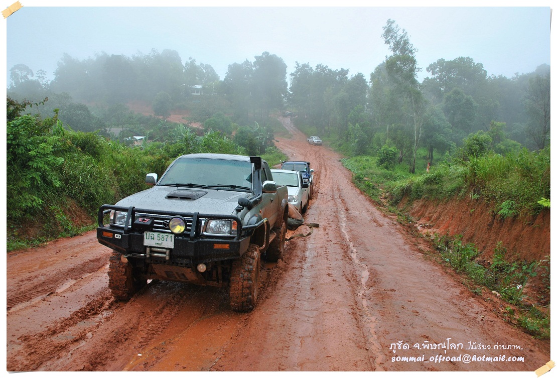 พอมาถึงก็ประชุมกันว่าจะจัดขบวนอย่างไร โดยมีผมออกหน้า รถน้านะขับสองตามหลัง ทดสอบโดยการปล่อยให้ขึ้นก่อนโดยไม่ต้องลาก ไม่ผ่านครับ ต้องลากขึ้นเนินแรกเป็นคันแรก ขนาดคนเดินยังลื่นเลยครับ