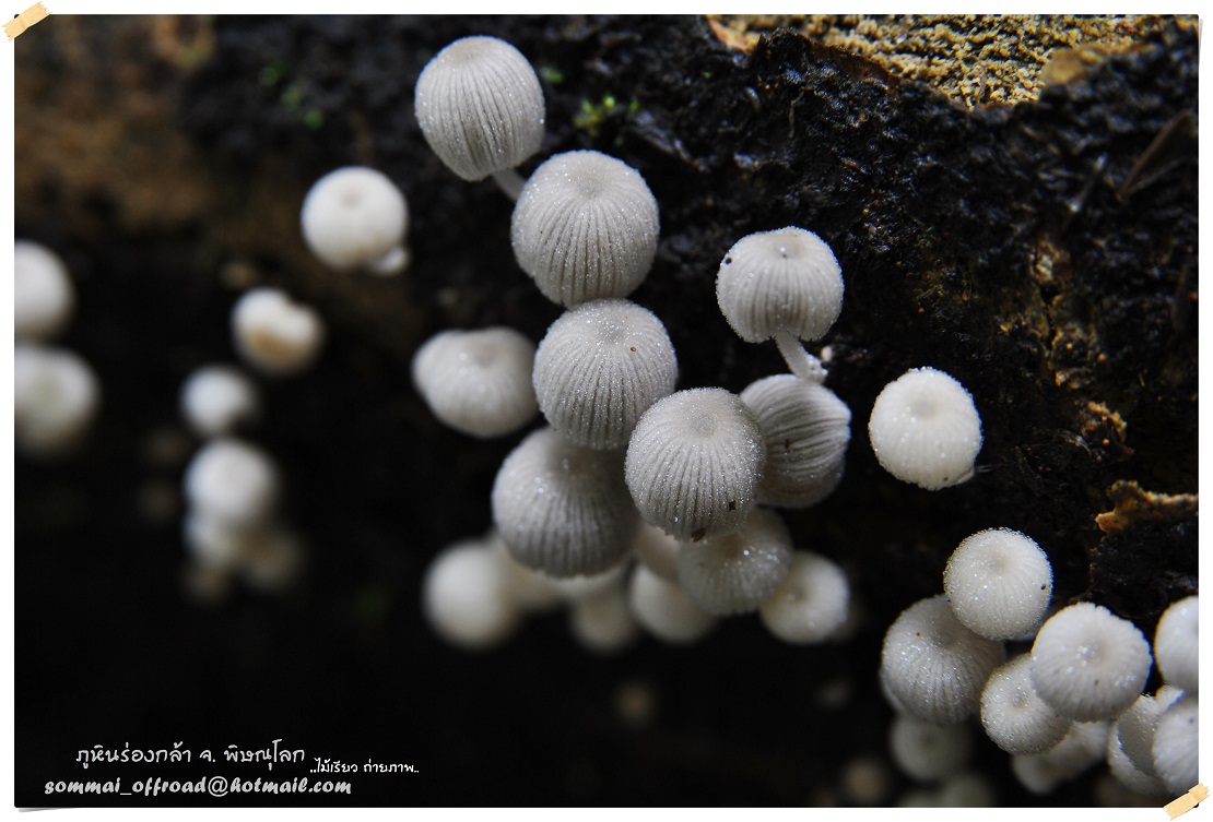 ซูมกันแบบชัดๆ อีกที จะเห็นละอองน้ำเล็กๆ จับที่ดอกเห็ดสวยมาก