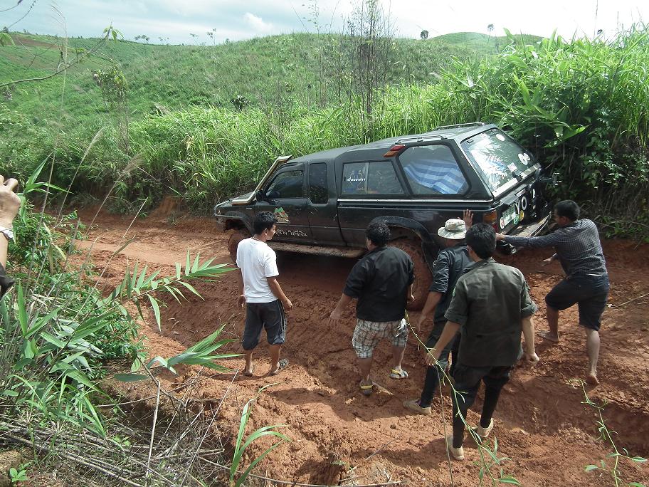 ข้ามสพานซุงมาแล้วเป็นเนินหินลื่น เจ้าหินงามปั่นฟรีขึ้นไม่ได้ เลยต้องใช้ตัวช่วย