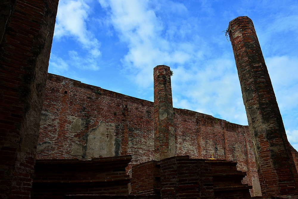 พระอุโบสถ ขนาดใหญ่ แต่สภาพร่องรอยที่ถูกทำลายจากศึกสงครามและกาลเวลา
