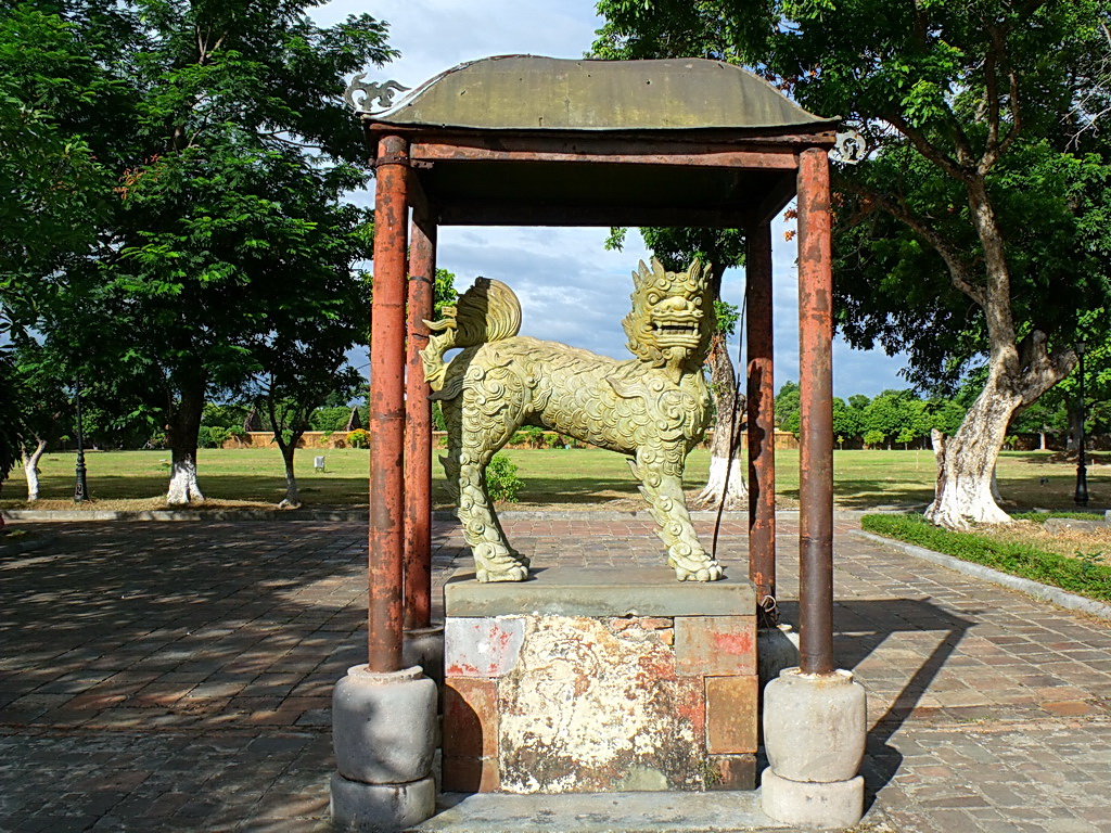 พระราชวังต้องห้าม หรือพระราชวังไดโห้ย ตั้งอยู่ใจกลางเมืองเว้ พระราชวังแห่งนี้มองจากภายนอกคงเดาได้ว่าน่าจะมีพิ้นที่กว้างขวางใหญ่โต แค่กำแพงก็เห็นยาวเหยียดถึง 2.5 กม. หากไกด์ไม่บอกว่าเป็นวังก็คงนึกว่าเป็นเขตทหาร เพราะรั้วรอบขอบชิตเป็นปราการแน่นหนามาก บรรยากาศก็ดูขึงขัง แถมด้านหน้ามีเสาธงขนาดใหญ่ โบกสะบัดด้วยธงสีแดงมีสัญญลักษณ์ดาวสีเหลืองอยู่ตรงกลาง