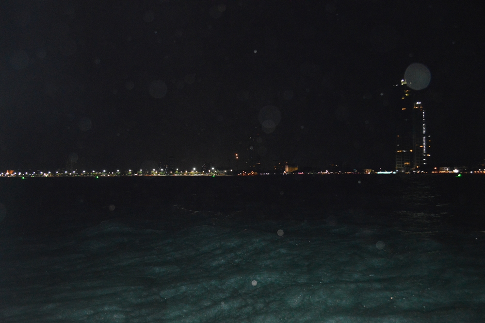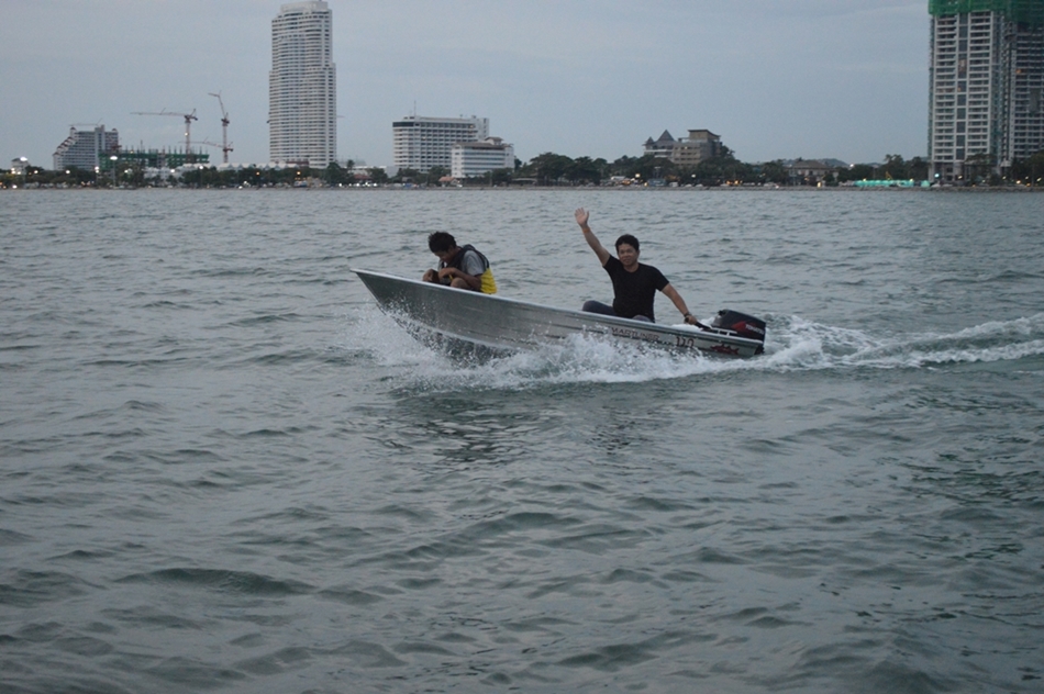 เวลาล่วงเลยไปเร็วมากๆ ลมเริ่มแรง ตกไป ตกมา ท้องฟ้าก็เริ่มมืด เห็นแต่แสงไฟ จากพัทยา และหาดนาจอมเทียน