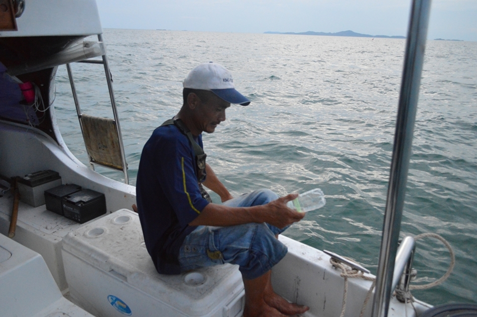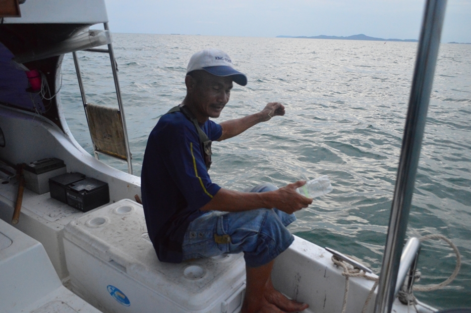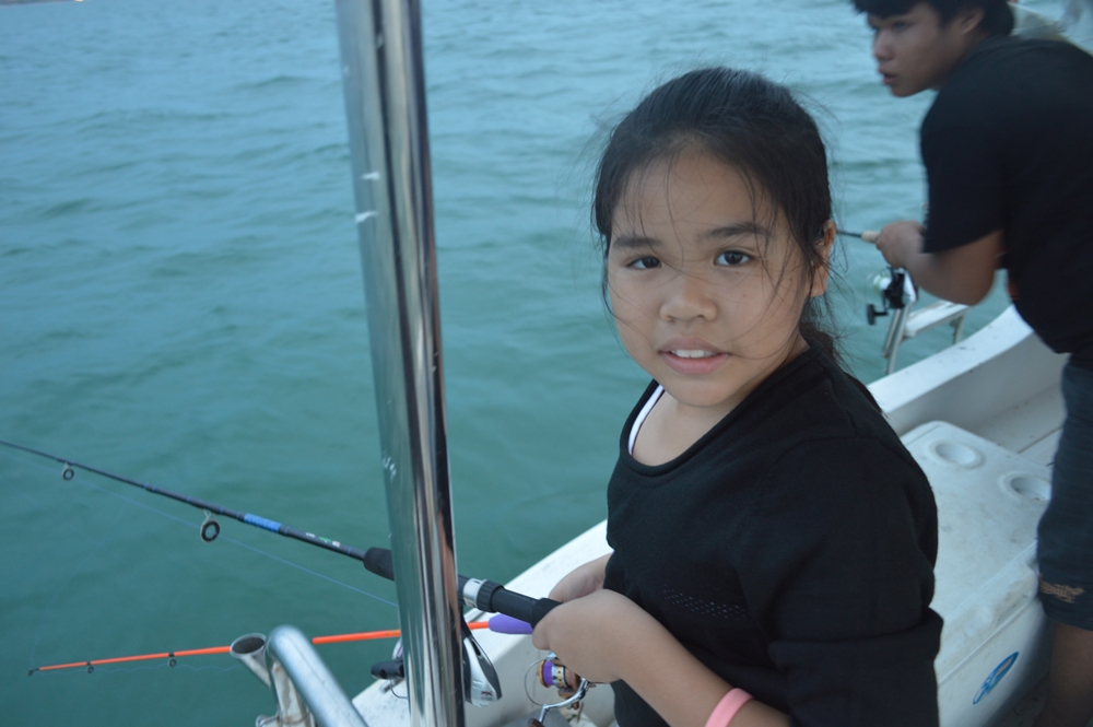 ออกมาจากฝั่ง ประมาณ 2 กิโลเองค่ะ เรือเริ่มจอดสนิท เราก็หาอุปกรณ์ตกกันเลย..