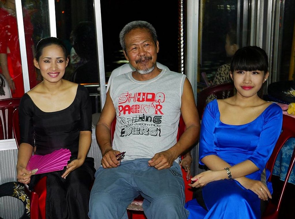 ลุงไกด์พยายามจัดฉากให้พวกเราได้ถ่ายรูปกับสาวงามแต่ละท่าน...ท่านี้น้าคูเมืองถูกขนาบซ้ายขวา...