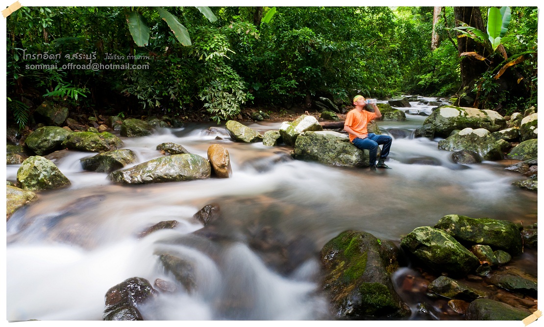 ภาพนี้เสียดายมาก..ขาหาย..นั่งแกว่งขาเพลินไปหน่อย วันนั้นผมรู้สึกอิ่มเอิบกับบรรยากาศของธรรมชาติ นั่งสูดอากาศบริสุทธิ์ ถึงจะนั่งอยู่คนเดียว แต่กับไม่รู้สึกกลัว เพลิดเพลินไปกับเสียงของสายน้ำ เสียงของใบไม้ที่ต้องลม มันช่างขับกล่อมได้ไพเราะจริงๆ