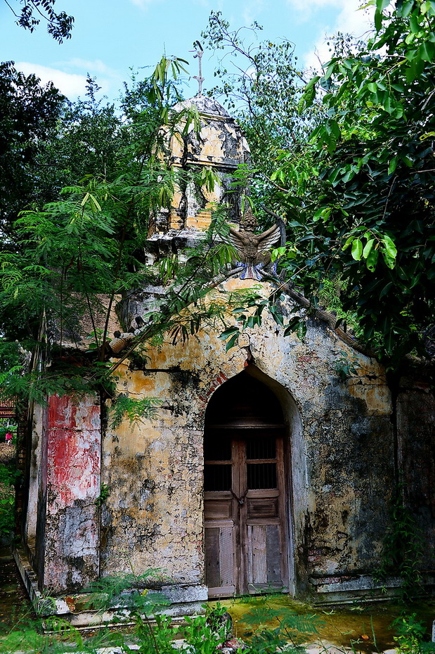 ได้เวลาไปต่อครับ เราเดินไปยังวัดพระปรางค์กัน มีไกด์(รุ่นใหญ่) นำเราไปดูสถูปเก่าแก่แห่งหนึ่งสร้างเมื่อ ปี 2471 สร้างโดย แม่เสงี่ยม ที่นี่เคยออกทีวีมาแล้ว