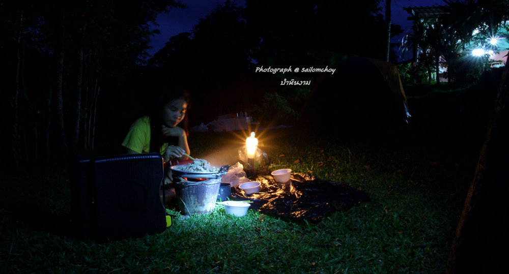 ลำดับที่ 10 (ภาพที่2) อช.ไทรทอง ช่วงกลางคืนครับ กางเต้นท์นอน พอหิวก็โทรศัพท์สั่งหมูกะทะจากร้านด้านนอก อช. มาส่งถึงที่ครับชุดละ 250.-บาท สองคนทานแทบไม่หมด ภาพอาจเบลอไปนิดนะครับ แต่อยากให้เห็นบรรยากาศยามค่ำ ของคนแคมป์ปิ้งแบบพวกเรา