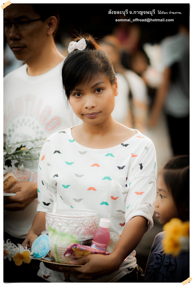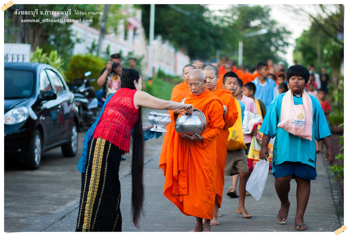 พระมาแล้วครับ..สาธุ..มาใส่บาตรทำบุญยามเช้ากันครับ สาวชาวมอญคนนี้ผมยาวมากๆ เลยครับ