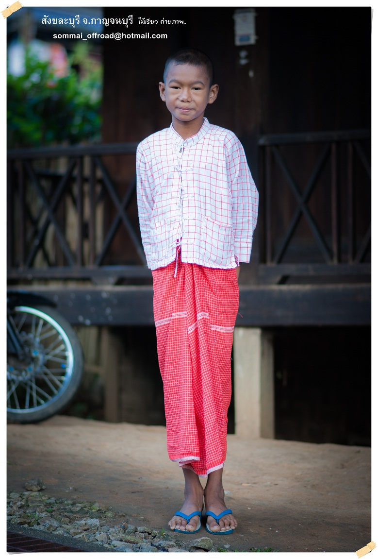 เด็กน้อยเชื้อสายชาวมอญผู้นี้จะแต่งกายใส่ชุดที่เป็นเอกลักษณ์ประจำถิ่น ช่างน่ารักมาก เค๊าจะคอยแนะนำและเล่าประวัติความเป็นมาของสะพาน