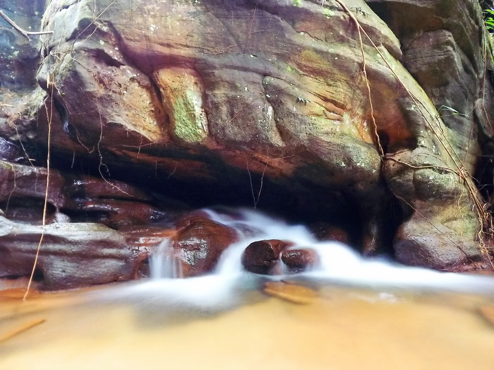 แล้วก็ลงรู ลอดไปข้างล่าง อันเป็นที่มาของชื่อ "น้ำตกลอดรู"