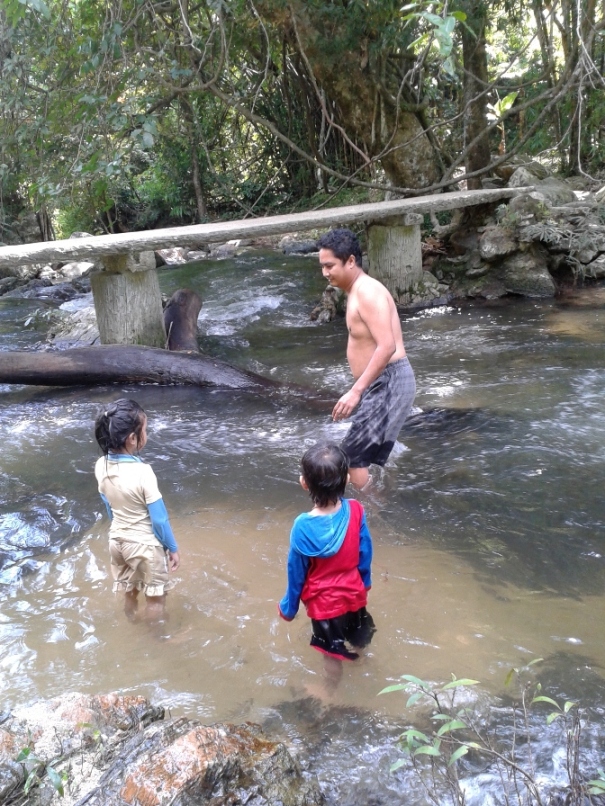 เลยต้องเล่นเป็นเพื่อนลูกด้วยเลย จะได้คอยระวังเด็กๆด้วย น้ำใสเย็น แต่ก็เชี่ยวบางช่วง หินเยอะต้องคอยระวัง