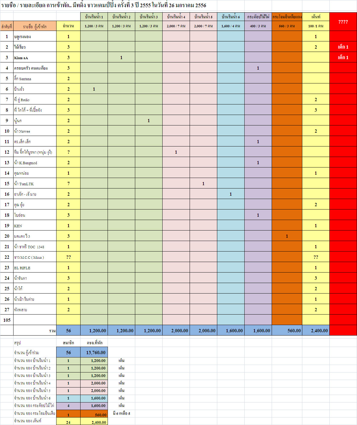 ... ขออัพเดท การจองบ้านพัก งานมิทติ้งครั้งที่ 3 ปี55 ... ณ.วันที่ 6 / 11 / 55 เวลา 20.50
