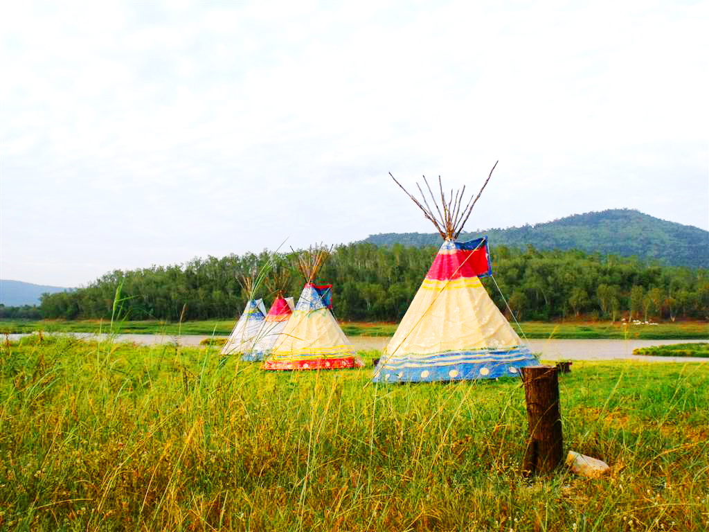 กระโจมอินเดียแดง 700/หลัง พัดลม พักได้ 3 คน เหลือ 560 บาท .... มี 6 หลัง ... ยังไม่มีใครจอง
