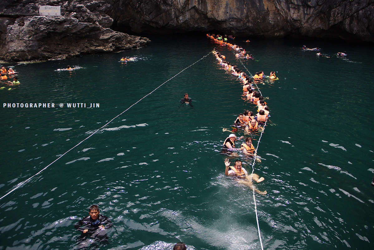 ถ้ำมรกต หรือเรียกอีกชื่อหนึ่งว่า ถ้ำน้ำ ตั้งอยู่บริเวณ เกาะมุก มีความยาวทั้งหมด 80 เมตร ตามประวัติกล่าวกันว่า...กลุ่มราษฎรท้องถิ่นได้เข้ามา ถ้ำมรกต ครั้งแรกเพื่อหารังนกอีแอ่น เนื่องจากในอดีตถ้ำนี้จะมีนกอีแอ่นอาศัยอยู่เป็นจำนวนมาก และต่อมาโจรสลัดจะนำของที่ปล้นมาได้ ซุกซ่อนไว้ในที่แห่งนี้ระยะหนึ่ง แล้วจึงจะนำของดังกล่าวออกไป เมื่อมองดูรอบ ๆ เหมือนกับเรายืนอยู่ในปล่องขนาดใหญ่ ซึ่งเกิดจากการยุบตัวของหินปูนในอดีต