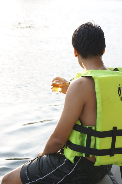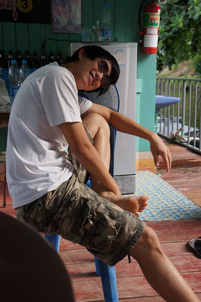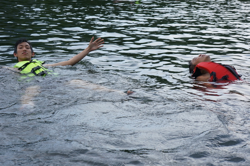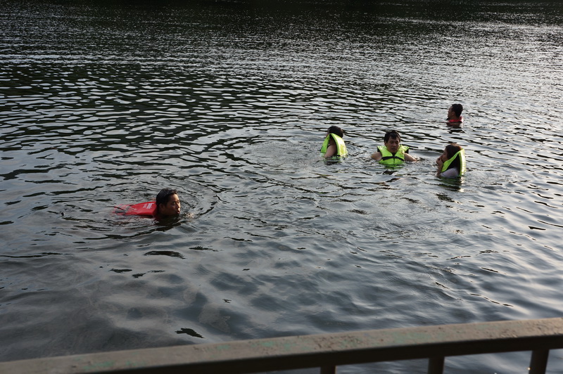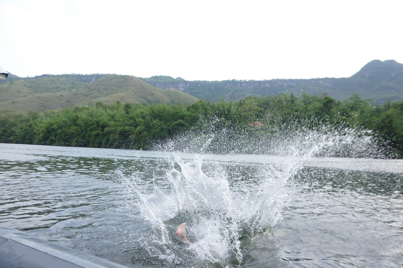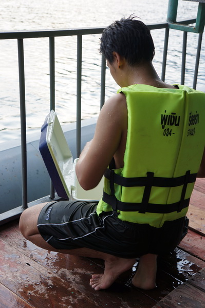 นายแบบเรา หลังจากโหลดสิ่งของลงแพ จัดเข้าห้อง เรียบร้อย ก็เตรียมกระโดดลงน้ำกันแล้วครับ