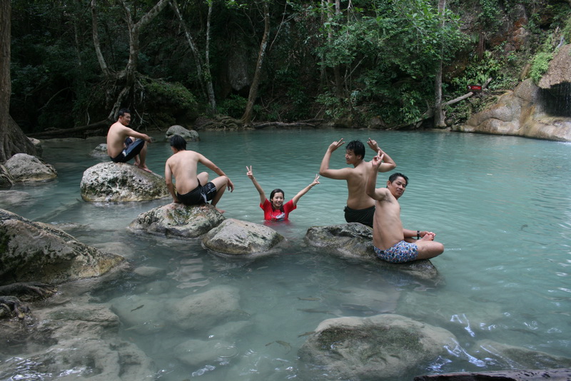น้ำตกเย็นจัง แถมมีฝูงปลาตัวเล็กๆน้อยๆ รุมตอด ทนจั๊กจี้ไม่ไหว ต้องอาศัยขึ้นไปบนโขดหิน 555