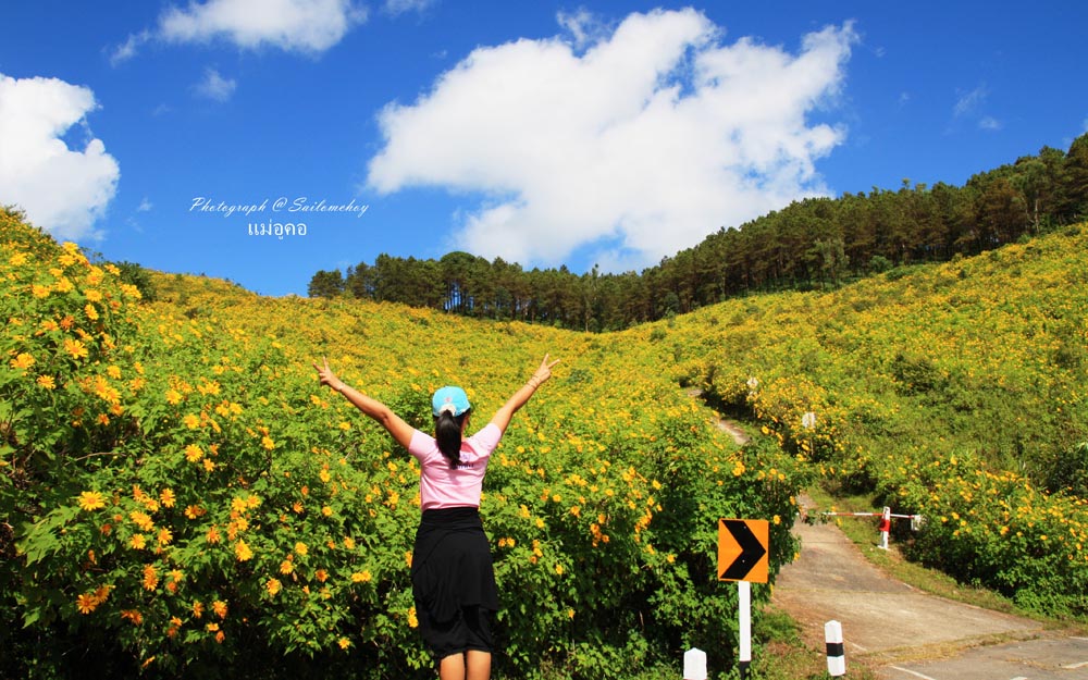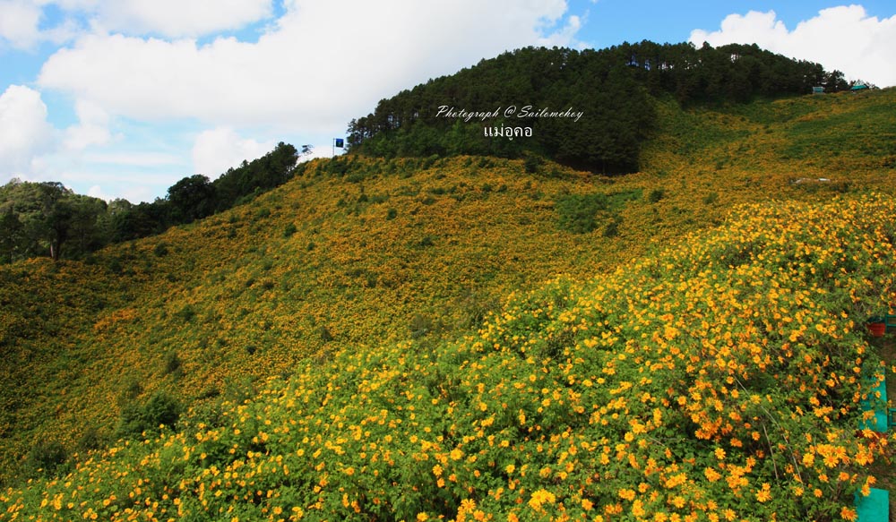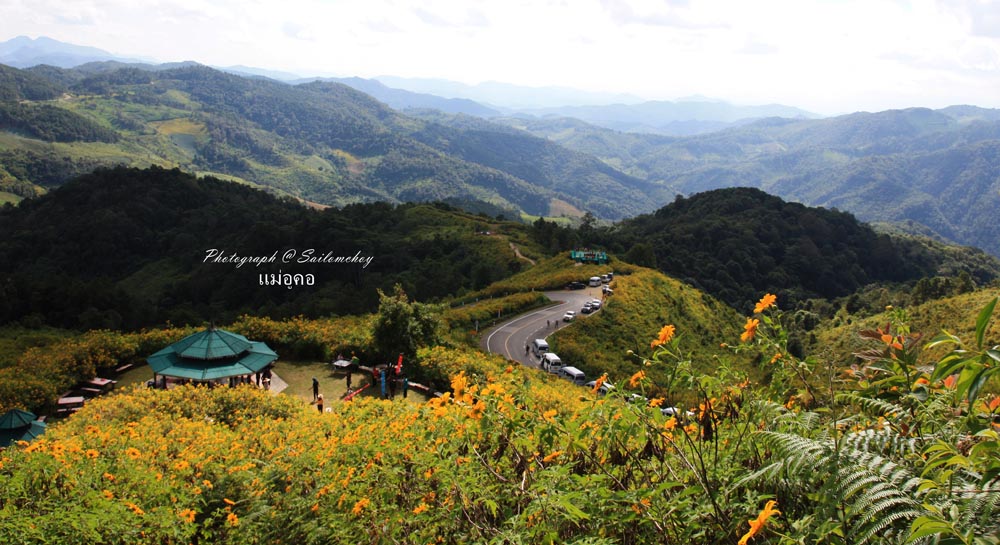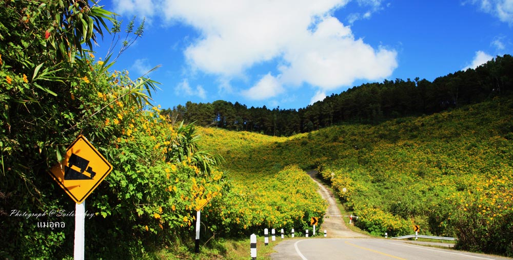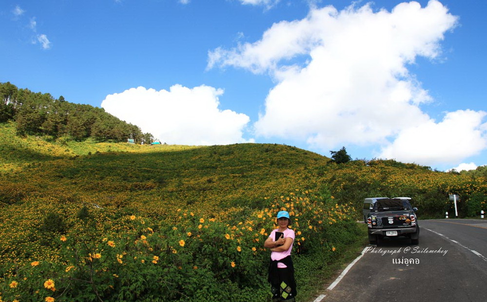 เพลินครับ กับทุ่งบัวตอง สี่โมงเย็นซะแล้ว รีบออกจากทุ่งบัวตอง ใช้ถนน ขุนยวม-แม่แจ่ม เพื่อตัดเข้าดอยอินทนนท์ มื้อค่ำนี้มีดินเนอร์ที่ลานกางเต็นท์ดงสนครับ