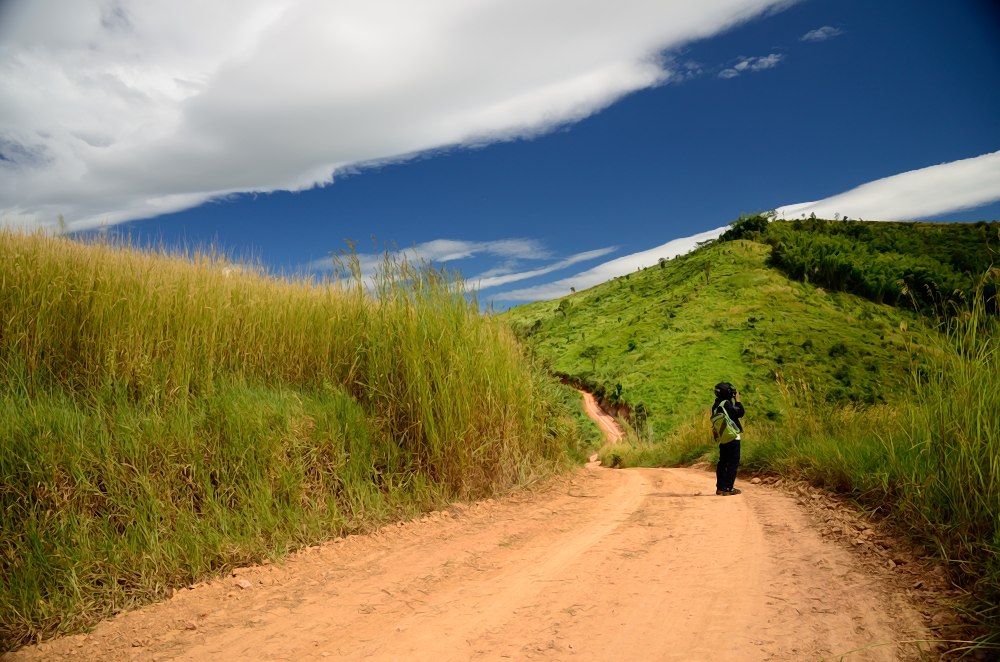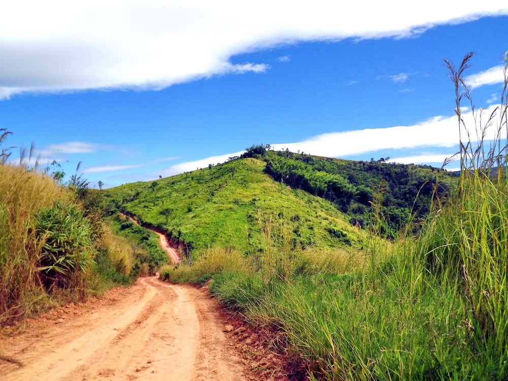 ตอนอยู่ข้างล่างนี้ ฟ้าแจ่มใสมาก เส้นทางรู้สึกว่า เขาเพิ่งจะเกรดใหม่เมื่อไม่นานมานี้นี่เอง เรียบ ไม่มีหลุมเลย ขี่แบบชิว ๆ สบาย ๆ