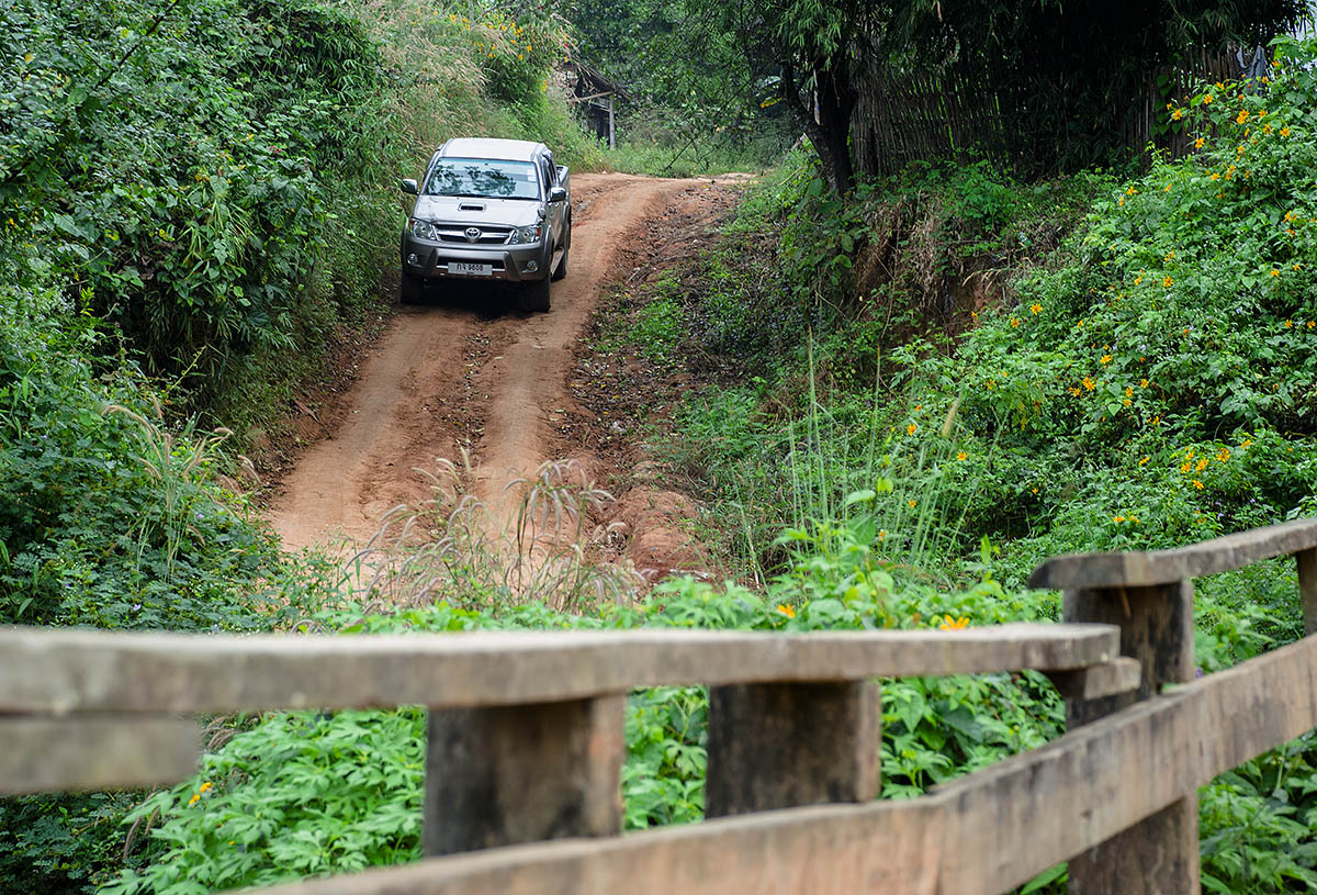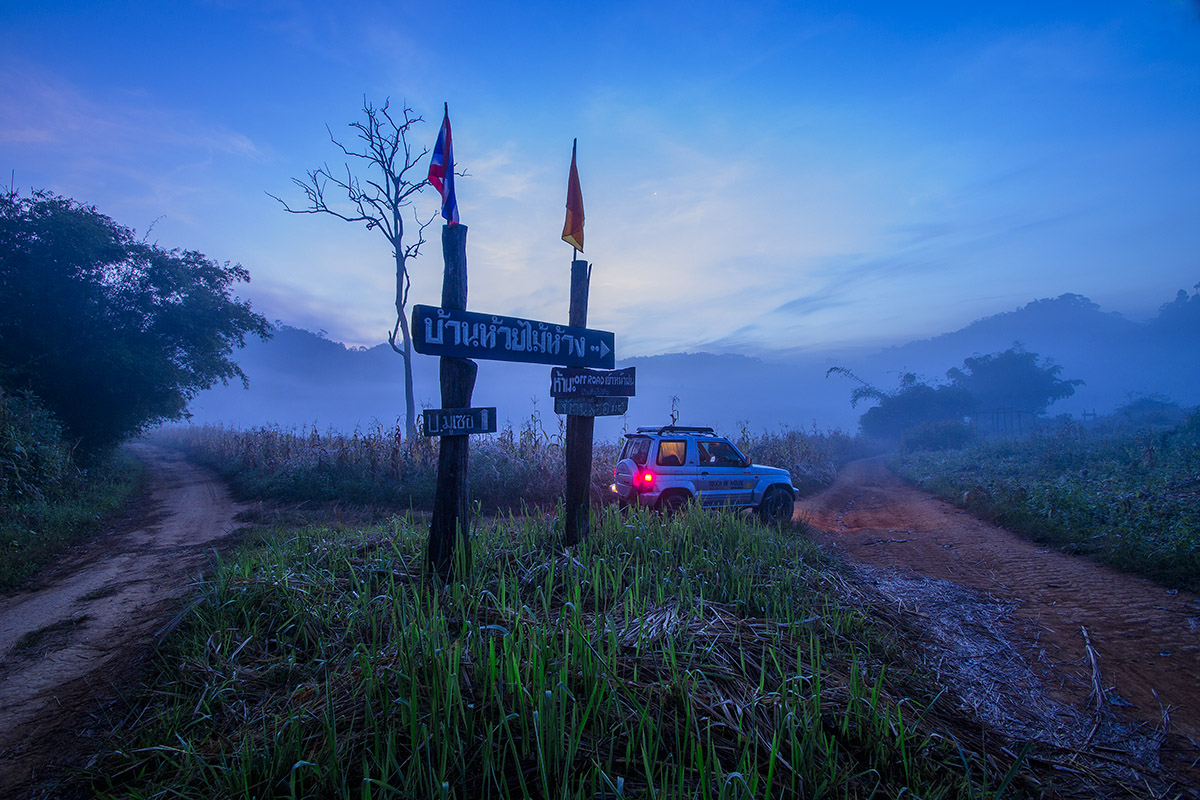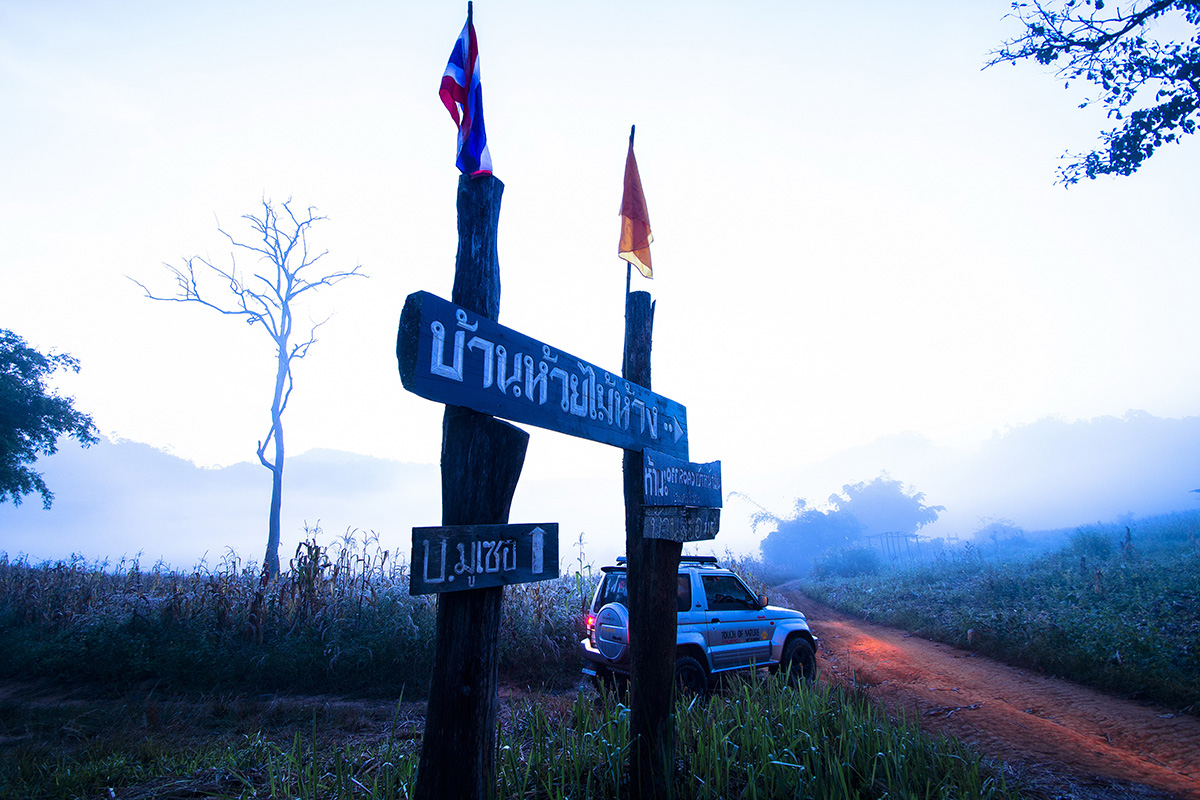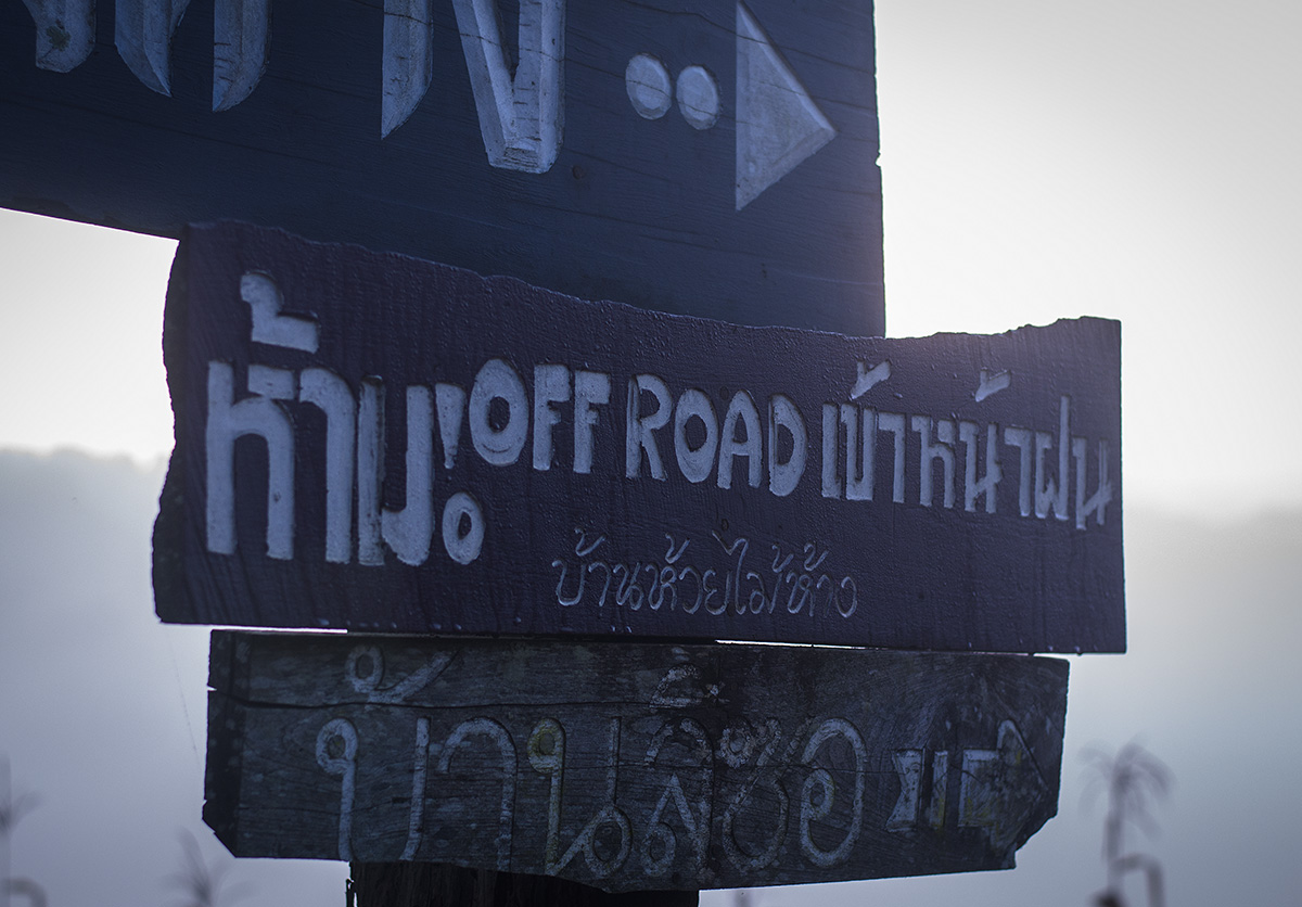เห็นป้ายนี้แล้วก็อดที่จะกล่าวถึงไมได้..ตอนที่จะเข้ามาที่นี่แวะถามทางเข้าวัดจากชาวบ้าน(จริงพอจะรู้เส้นทางมาแล้ว)แต่ถามเพื่อความมั่นใจ..ชาวบ้านที่ทำไร่อยู่ข้างทางบอกว่าเข้าไม่ได้อย่าเข้าไปเลย..สีหน้าไม่ค่อยพอใจ.อย่าเข้าไปเลยเดี๋ยวพวกเขาเดือดร้อนลำบาก(ถึงจะพูดไทยไม่ชัดแต่ก็พอจะรู้)..ในความเข้าใจของเรา..เขาหมายความว่าพวกรถพวกเรามาจะทำทางของเขาพั.งแล้วพวกเขาจะเข้า-ออกลำบากกัน..จริงๆแล้วเรื่องนี้ผมเคยคุยกับชาวบ้านหน้าฝนเขาไม่อยากให้รถออฟโร้ดเข้ามาหรอกถึงเข้าเอาของมาบริจากให้เขาก็เถอะ..เพราะเขามาแล้วเส้นทางของเขาเสียหายชาวบ้านเขาใช้รถขับ2ล้อยางเล็กๆออฟโร้ดใช้ยางใหญ่ๆเข้าไปออกมาแล้วทางของเขาเป็นร่องลึก..ที่นี้พวกชาวบ้านเองแหละจะต้องลำบากจะหารถไถมาดันปรับทางก็ยากแถมค่ารถไถก็แพงอีกต่างหาก...เขาบอกว่าหน้าแล้งระยะเวลา5-6เดือนเข้ามาเลยเต็มที่ยินดีต้อนรับ...จริงของเขาเอาของไปบริจาคผิดเวลากลับทำให้เขาต้องลำบากกัน..เหมือนคิดกลับกัน..คนอื่นเอาของมาให้เราแต่มาทำบ้านเราพังมันไม่คุ้มกัน..
