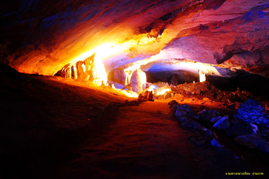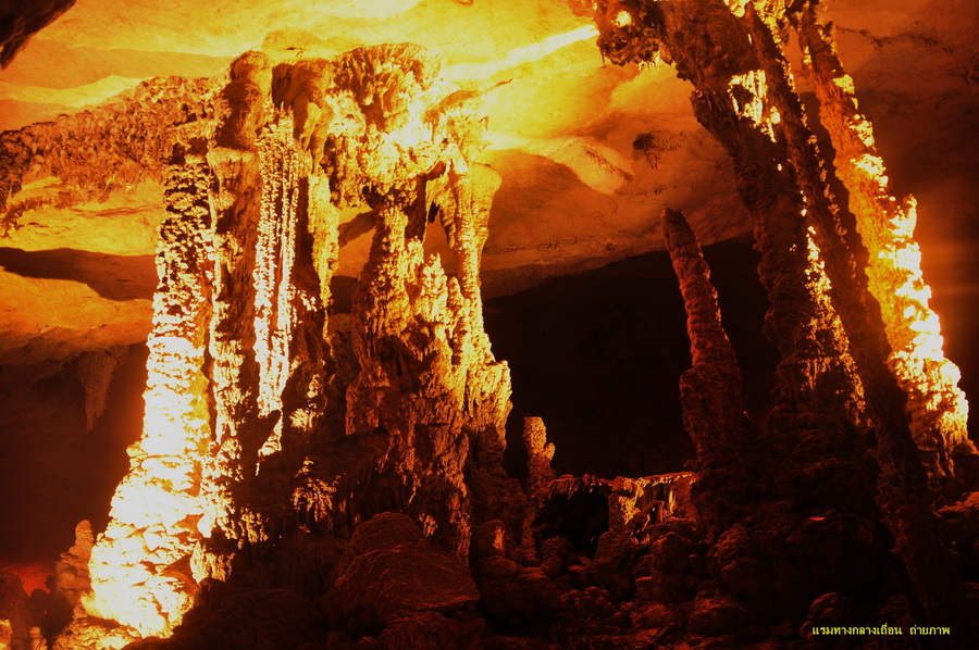 เมื่อนั่งเรือมาระยะทางหนึ่งก็พบห้องโถงใหญ่ คนขับเรือจะให้เราลงเรือและเดินข้ามโถงนี้เพื่อชมความอลังการของธรรมชาตที่ซ้อนเร้นอยู่....