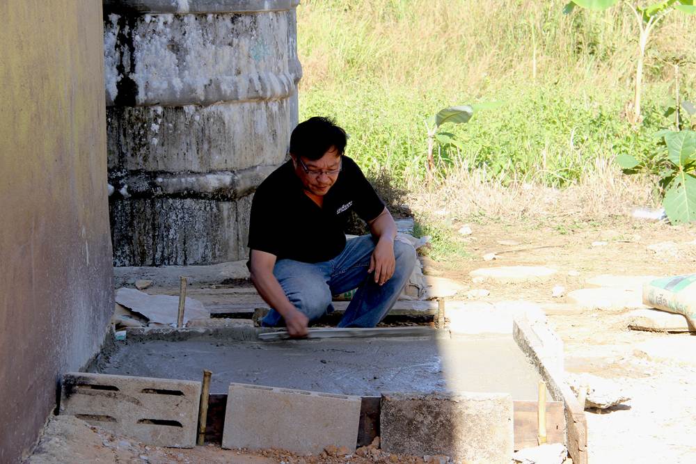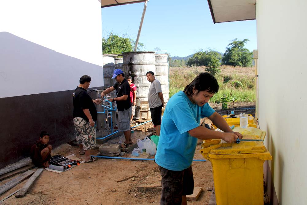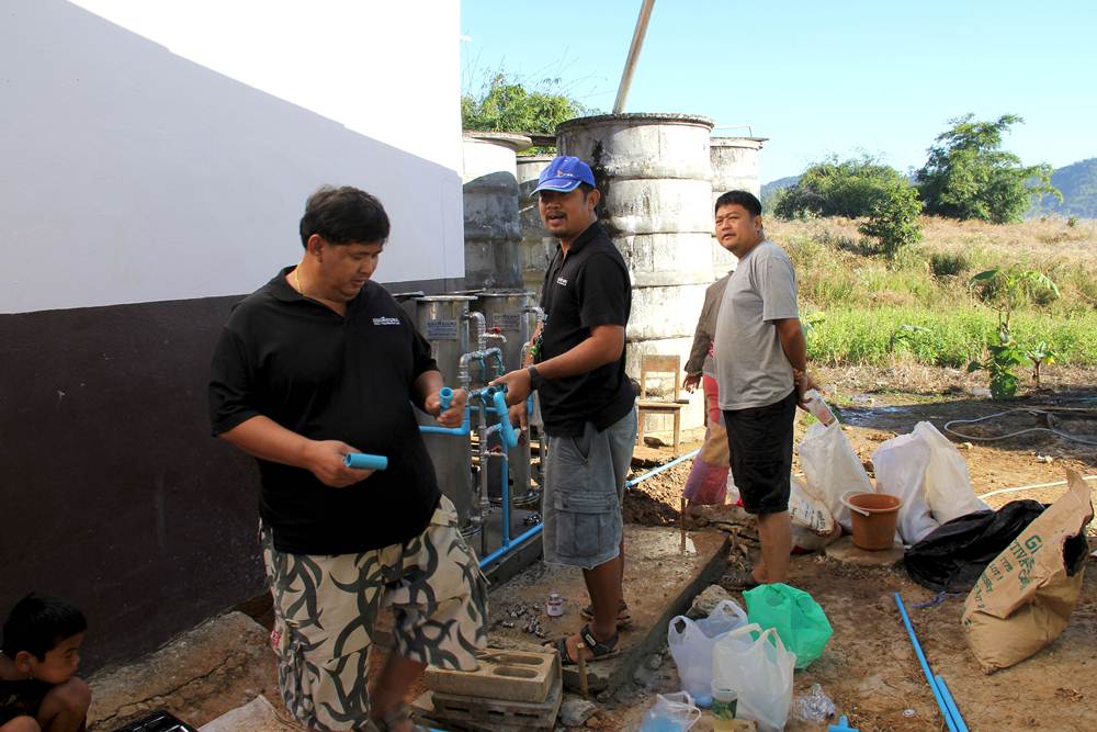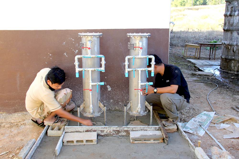 ทีมติดตั้งเครื่องกรองน้ำก๋เร่งมือกันเต็มที่เพื่อน้องๆจะได้ใช้น้ำที่สะอาดๆ