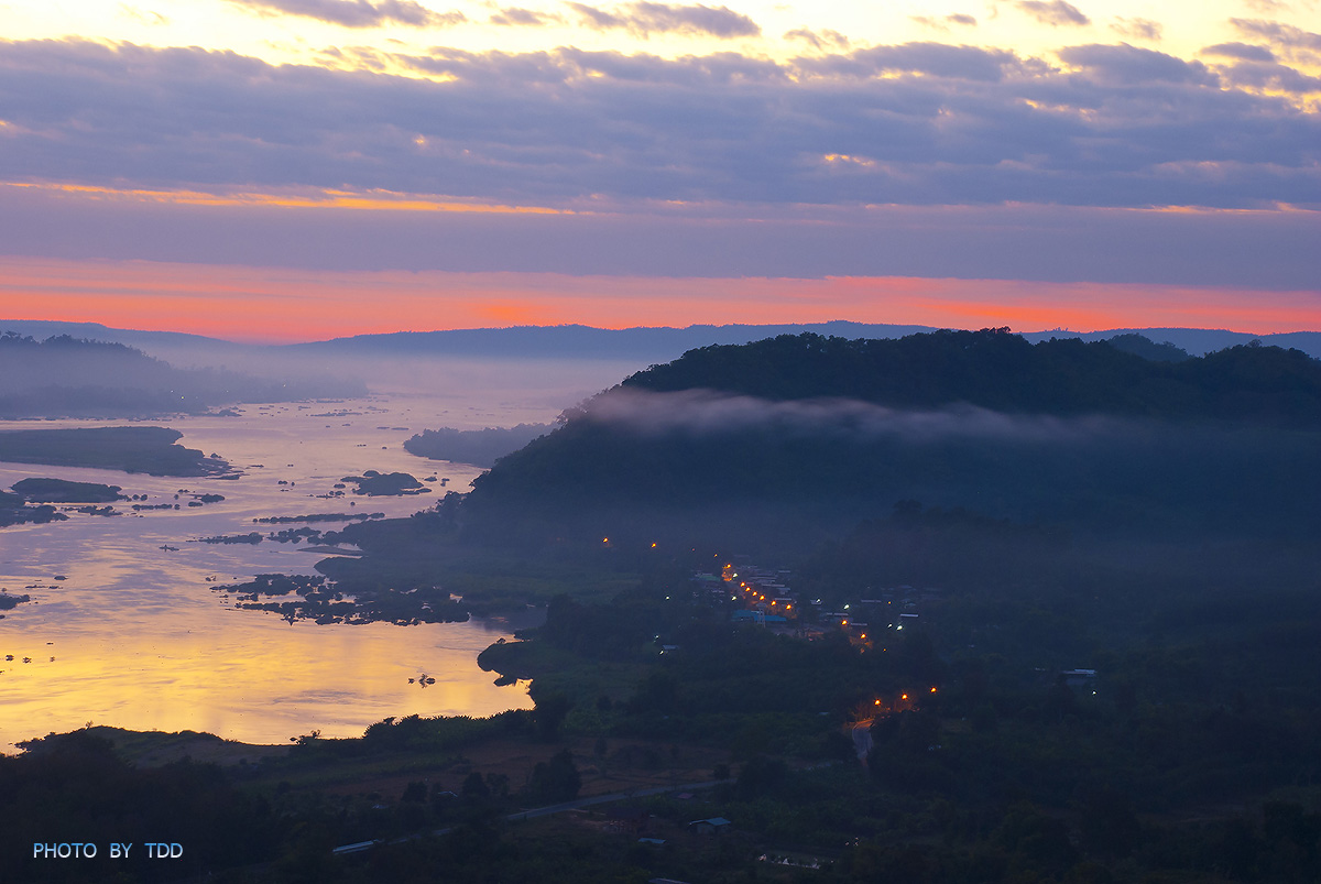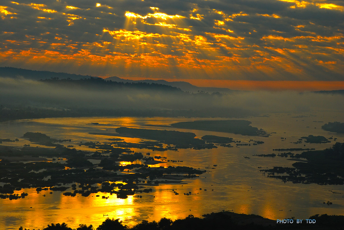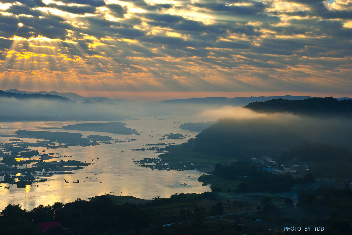 วันที่ไปหมอกไม่เยอะทำให้มองเห็นแม่น้ำโขงในช่วงหน้าแล้วเป็นเกาะแก่ง แต่โชคดีตรงที่มีเมฆสวยทำให้เห็นแสงเป็นลำ