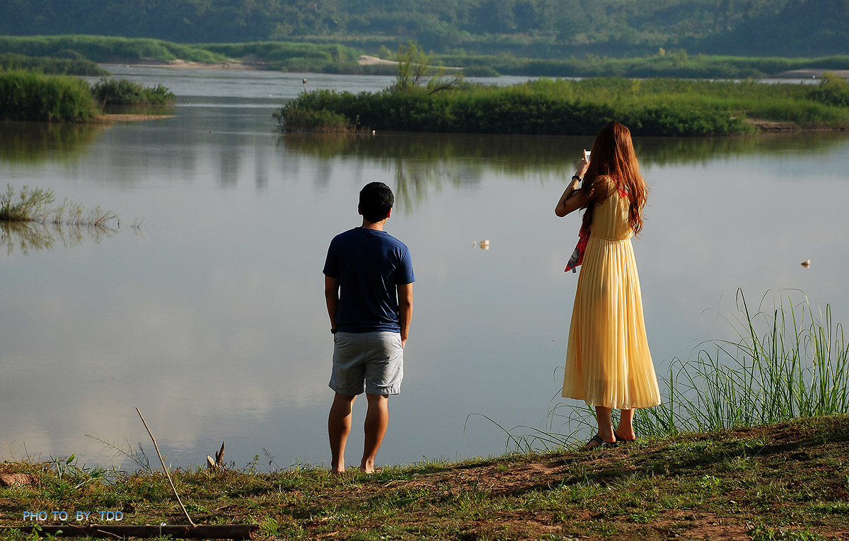 ลงจากเขามาถึงที่จอดรถ หันไปเห็นคู่หนุ่มสาวกำลังชื่นชมธรรมชาต ริมแม่น้ำโขงมองไปฝั่งลาว เลยแอบถ่าย