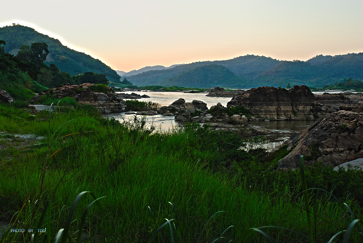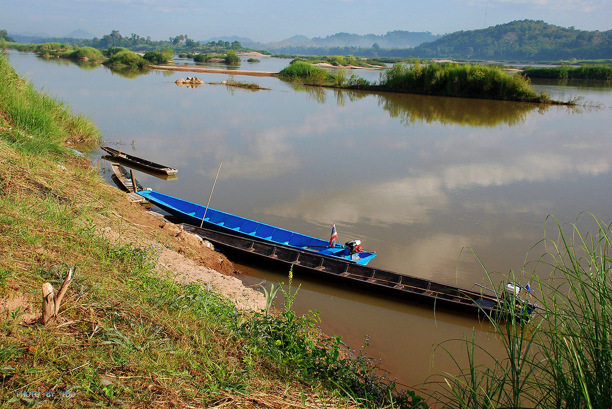 น้ำโขงในช่วงนี้แห้งขอด เหลือเป็นเกาะแก่ง บางช่วงเดินข้ามได้