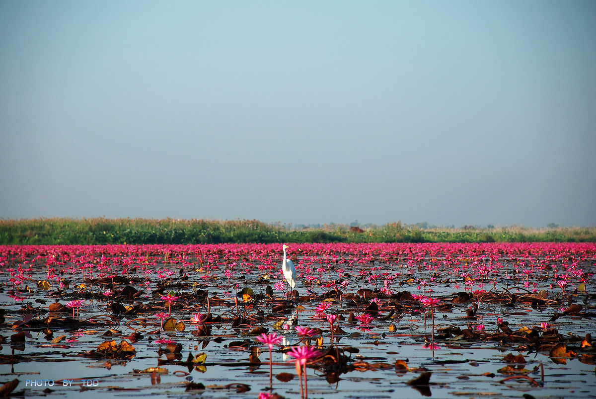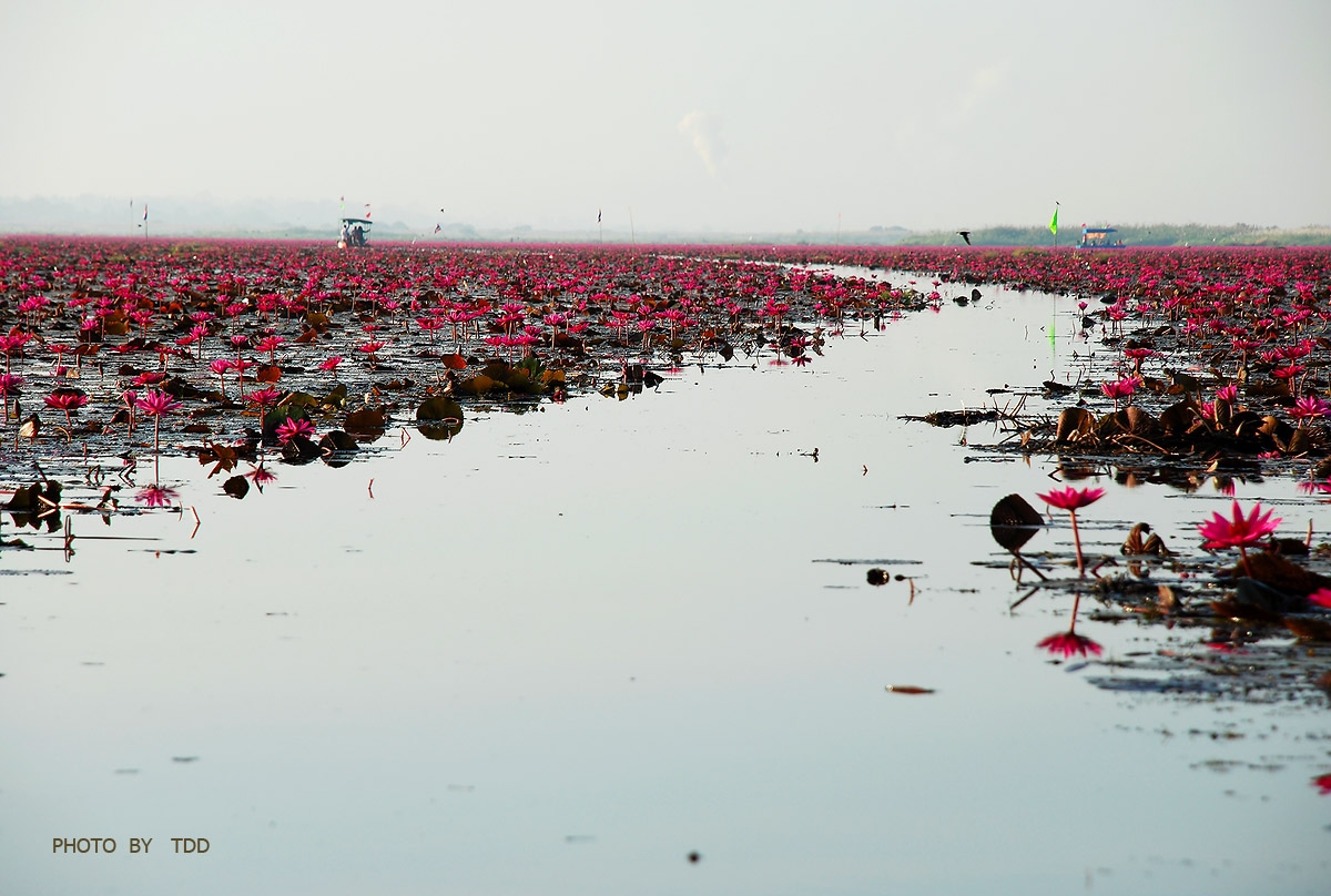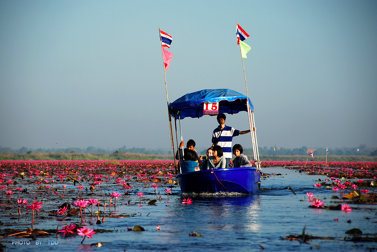 ดอกจะมากหรือน้อยขึ้นอยู่กับระดับน้ำที่เหลือในหนองน้ำ ปีใหนน้ำมากดอกจะเยอะ ส่วนปีนี้น้ำน้อยลึกแค่ 1 เมตร บางช่วงเรือไปไม่ได้