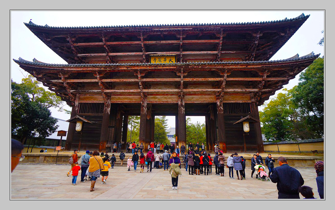 เดินกันต่อครับ ด้านหน้าคือซุ้มประตูนันไดมง มีเสาขนาดยักษ์ รองรับน้ำหนักหลังคาที่เก่าแก่และสวยงามถึง 18 ต้น