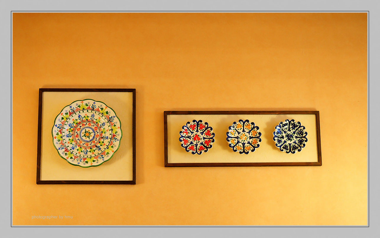ที่ร้านประดับผนังด้วยจานลวดลายสวยงาม